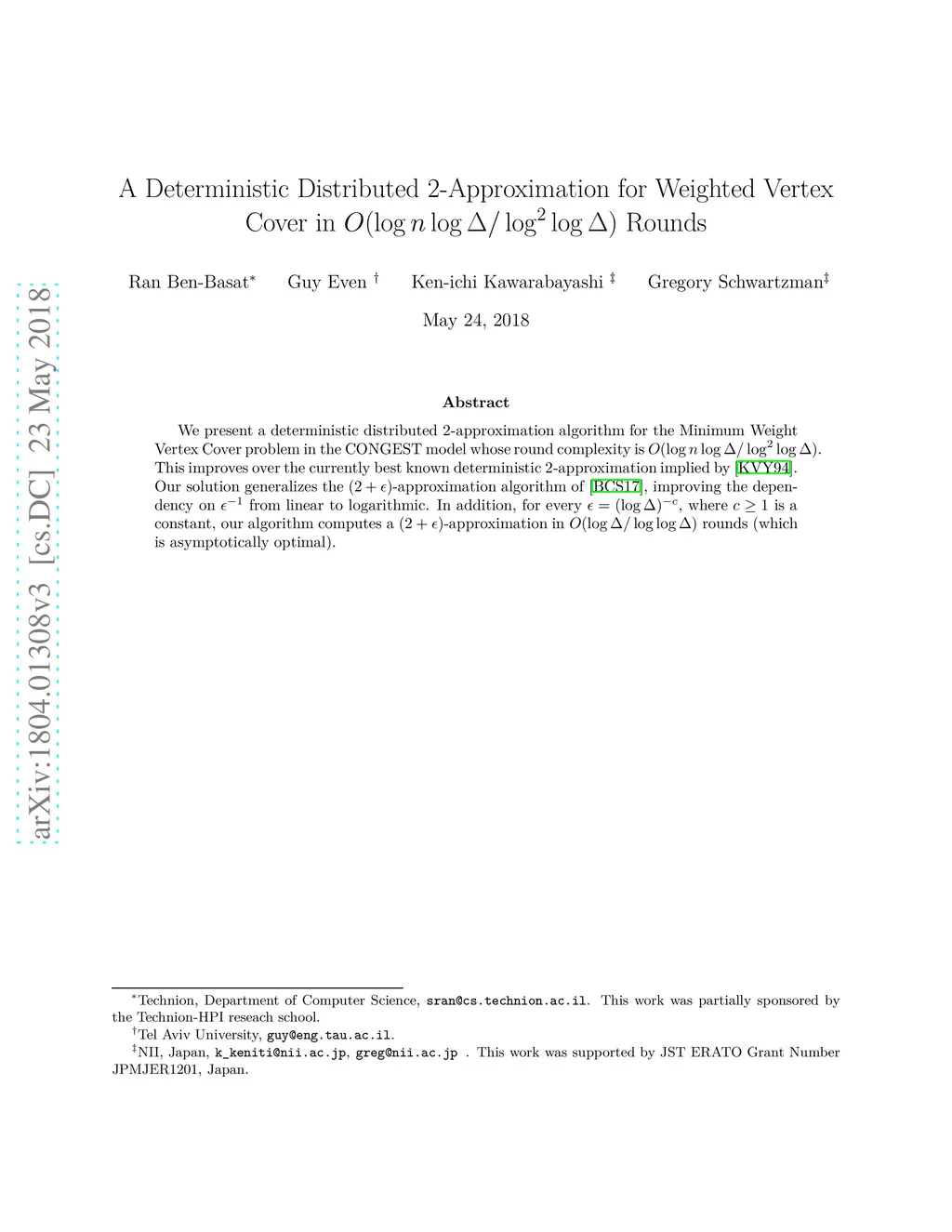 A Deterministic Distributed -Approximation for Weighted Vertex Cover