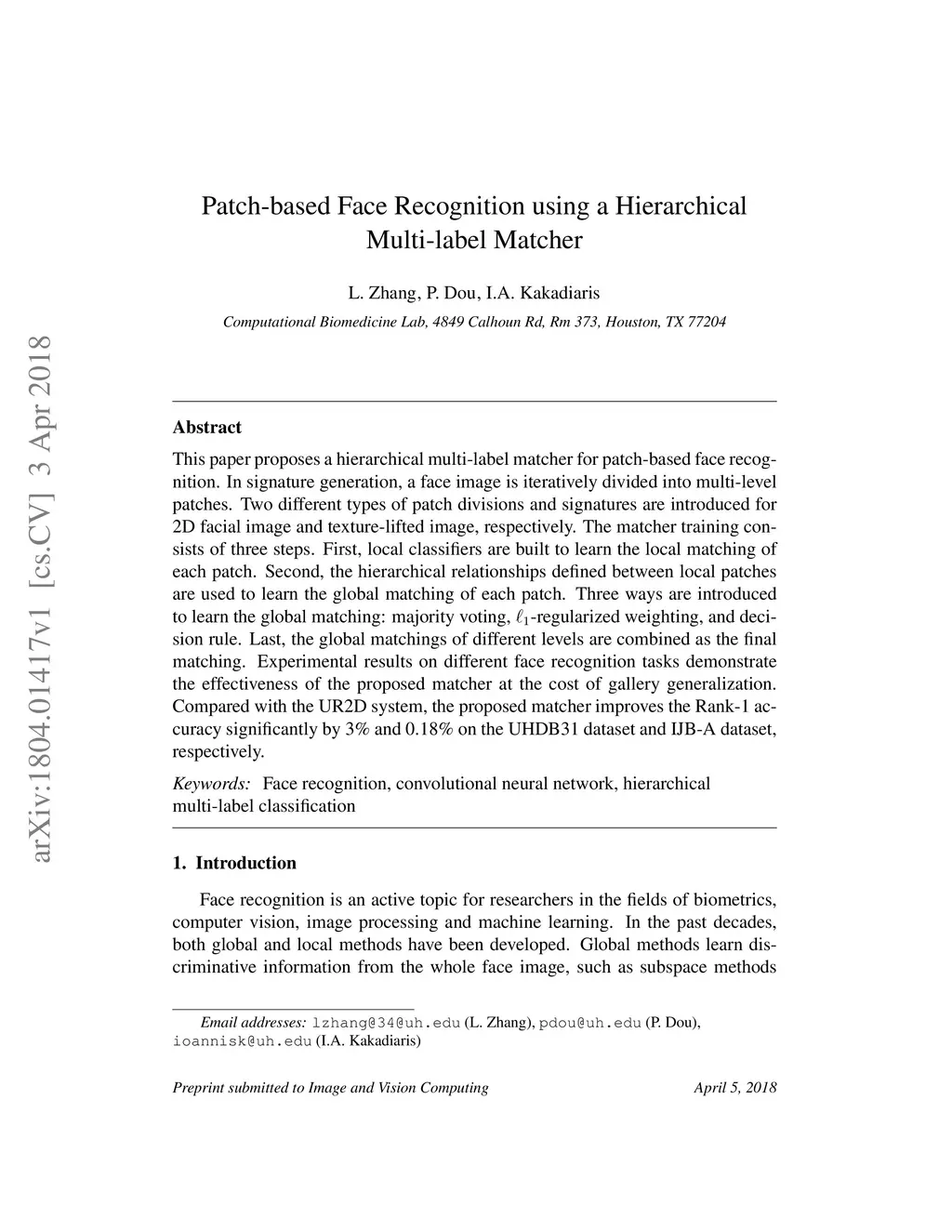 Patch-based Face Recognition using a Hierarchical Multi-label Matcher