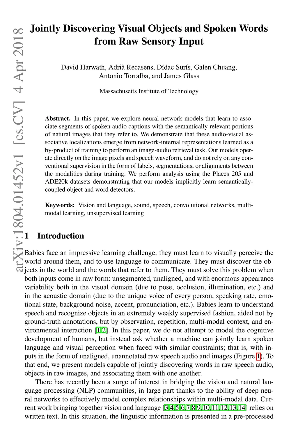 Jointly Discovering Visual Objects and Spoken Words from Raw Sensory
