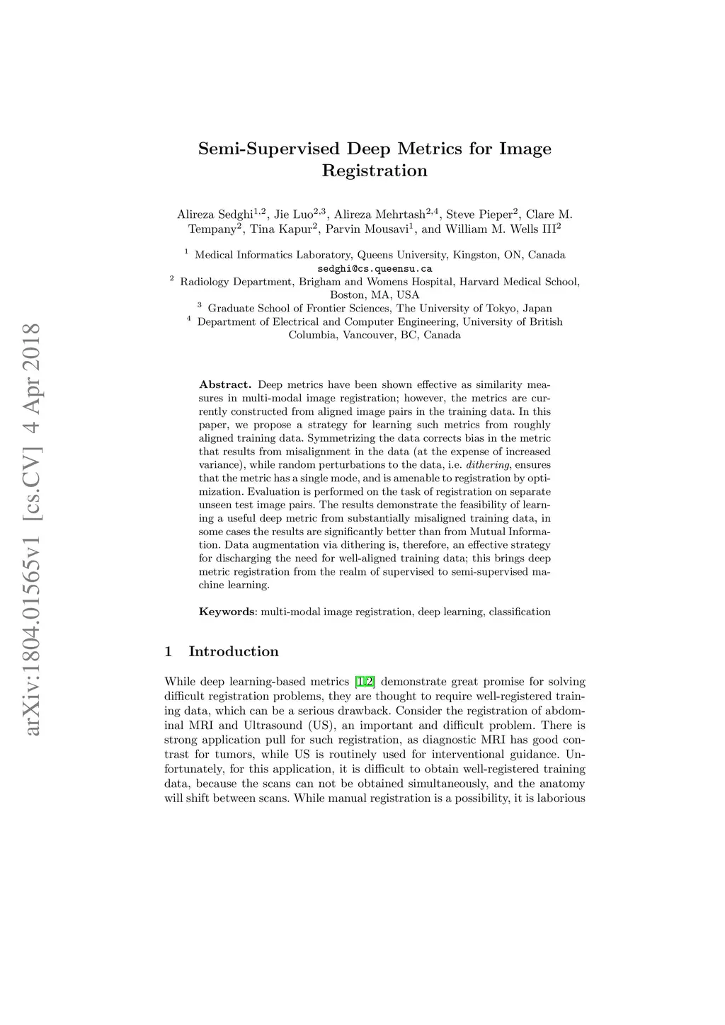 Semi-Supervised Deep Metrics for Image Registration