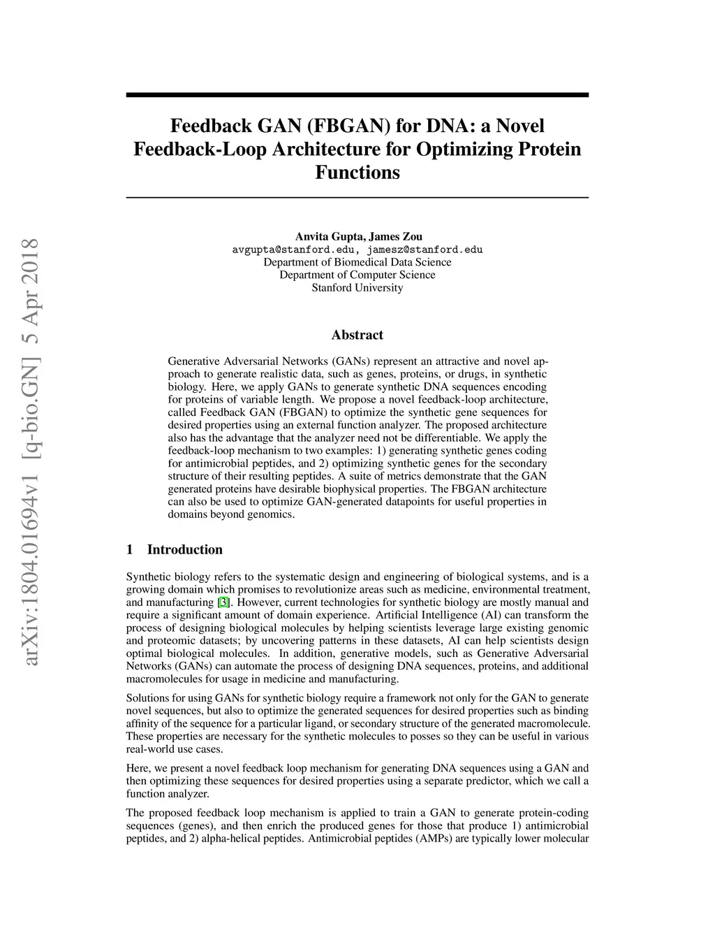 Feedback GAN (FBGAN) for DNA: a Novel Feedback-Loop Architecture for