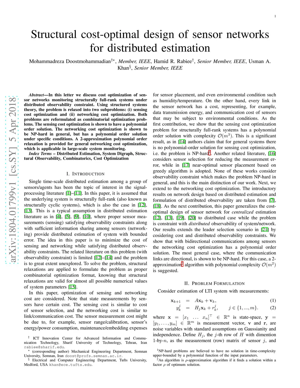Structural cost-optimal design of sensor networks for distributed