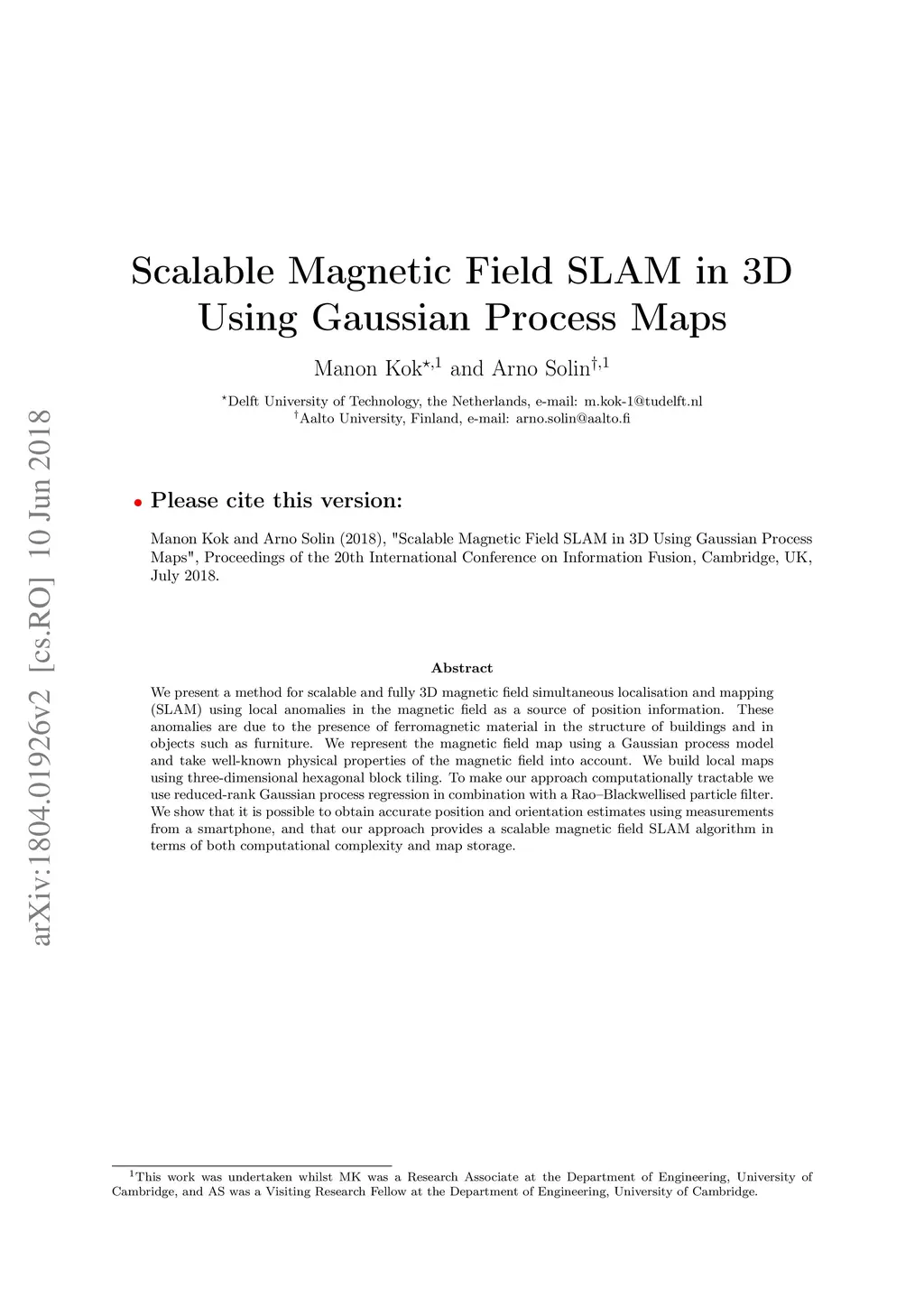 Scalable Magnetic Field SLAM in 3D Using Gaussian Process Maps