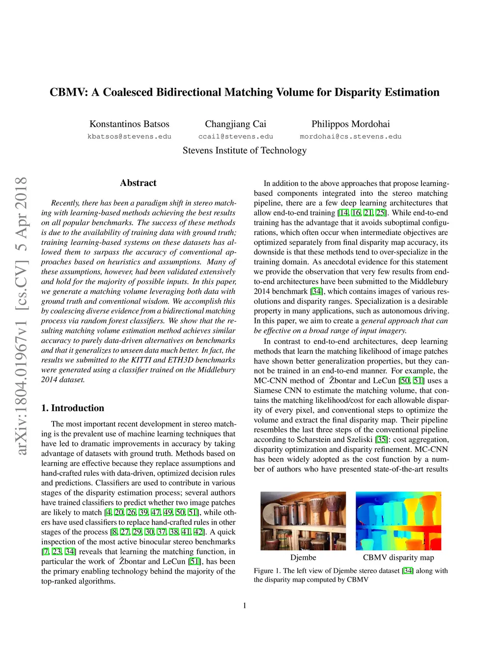 CBMV: A Coalesced Bidirectional Matching Volume for Disparity Estimation