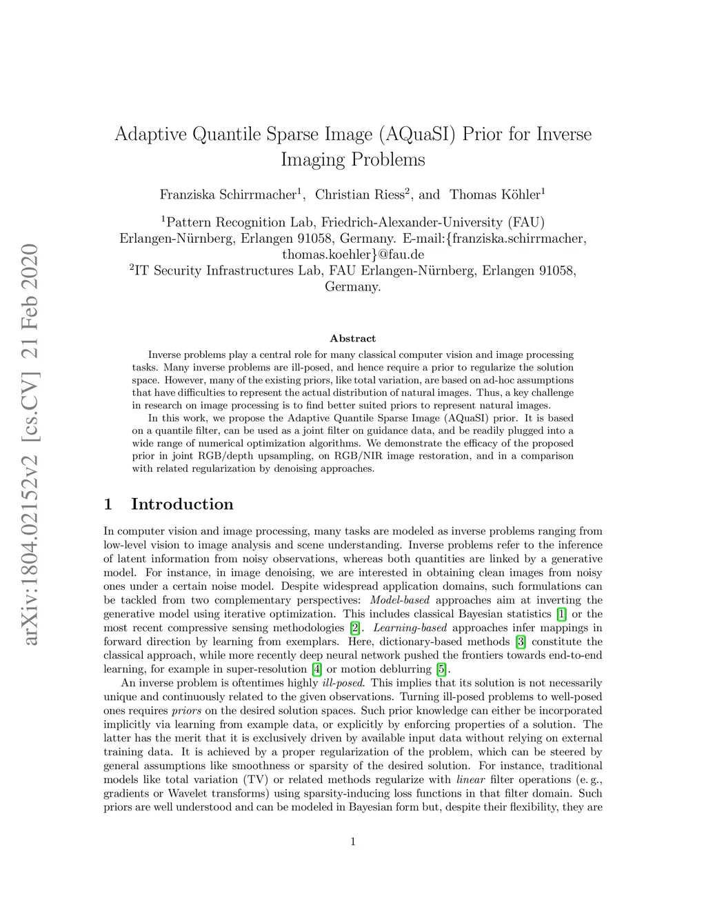 Inverse problems play a central role for many classical computer vision and image processing tasks. Many inverse problems are ill-posed, and hence require a prior to regularize the solution space. However, many of the existing priors, like total variation, are based on ad-hoc assumptions that have difficulties to represent the actual distribution of natural images. Thus, a key challenge in research on image processing is to find better suited priors to represent natural images. In this work, we propose the Adaptive Quantile Sparse Image (AQuaSI) prior. It is based on a quantile filter, can be used as a joint filter on guidance data, and be readily plugged into a wide range of numerical optimization algorithms. We demonstrate the efficacy of the proposed prior in joint RGB/depth upsampling, on RGB/NIR image restoration, and in a comparison with related regularization by denoising approaches.