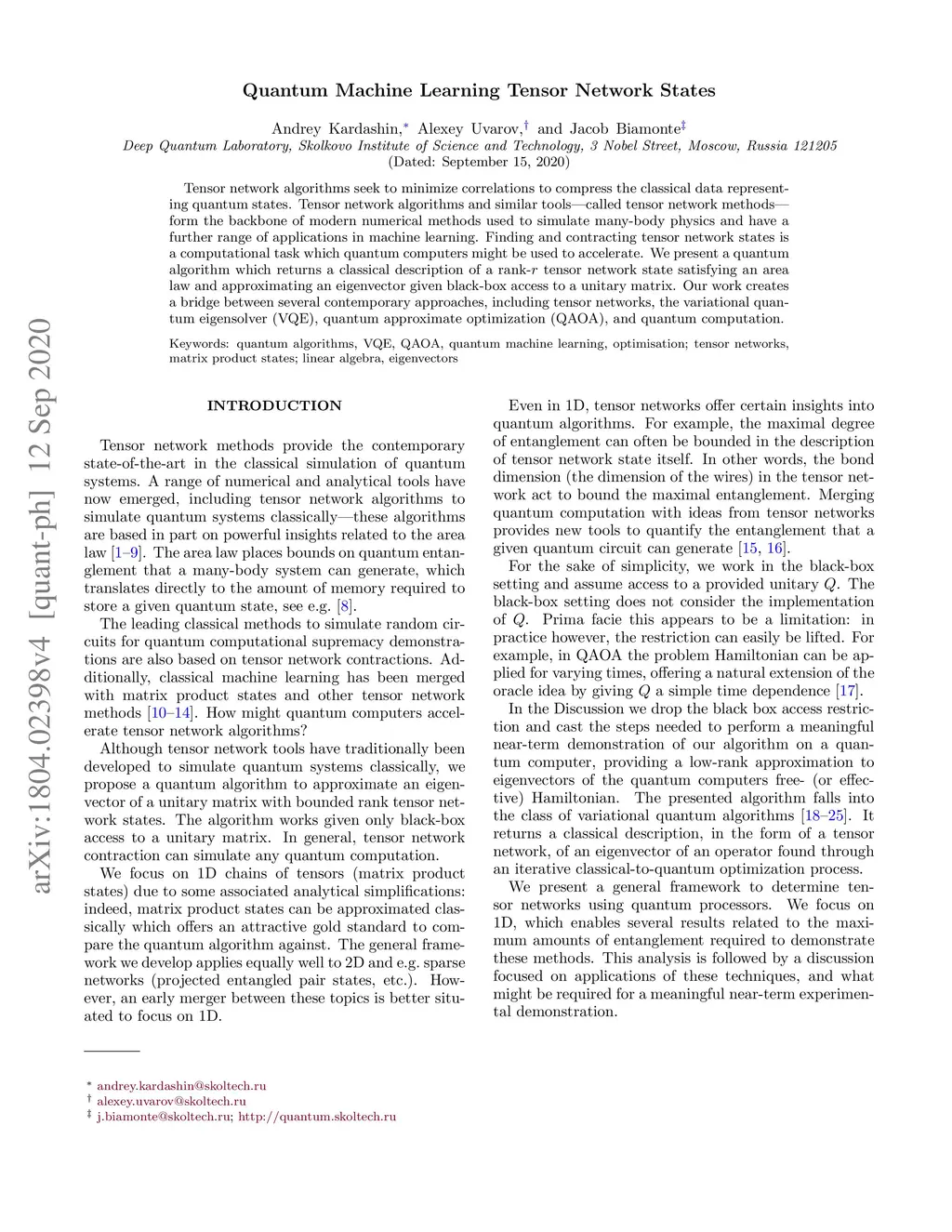 Quantum Machine Learning Tensor Network States