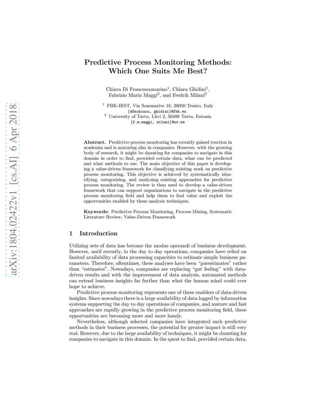 Predictive Process Monitoring Methods: Which One Suits Me Best?