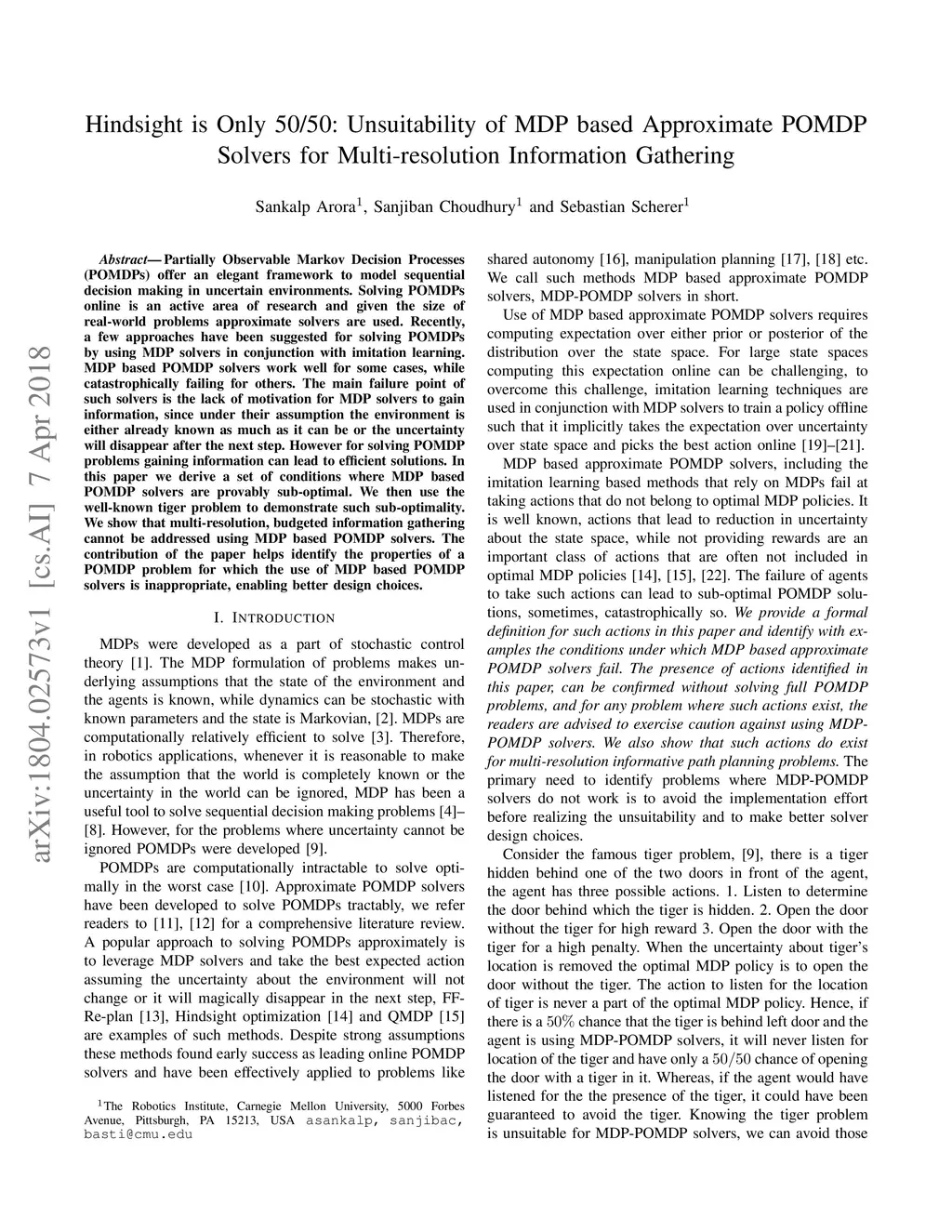 Hindsight is Only 50/50: Unsuitability of MDP based Approximate POMDP