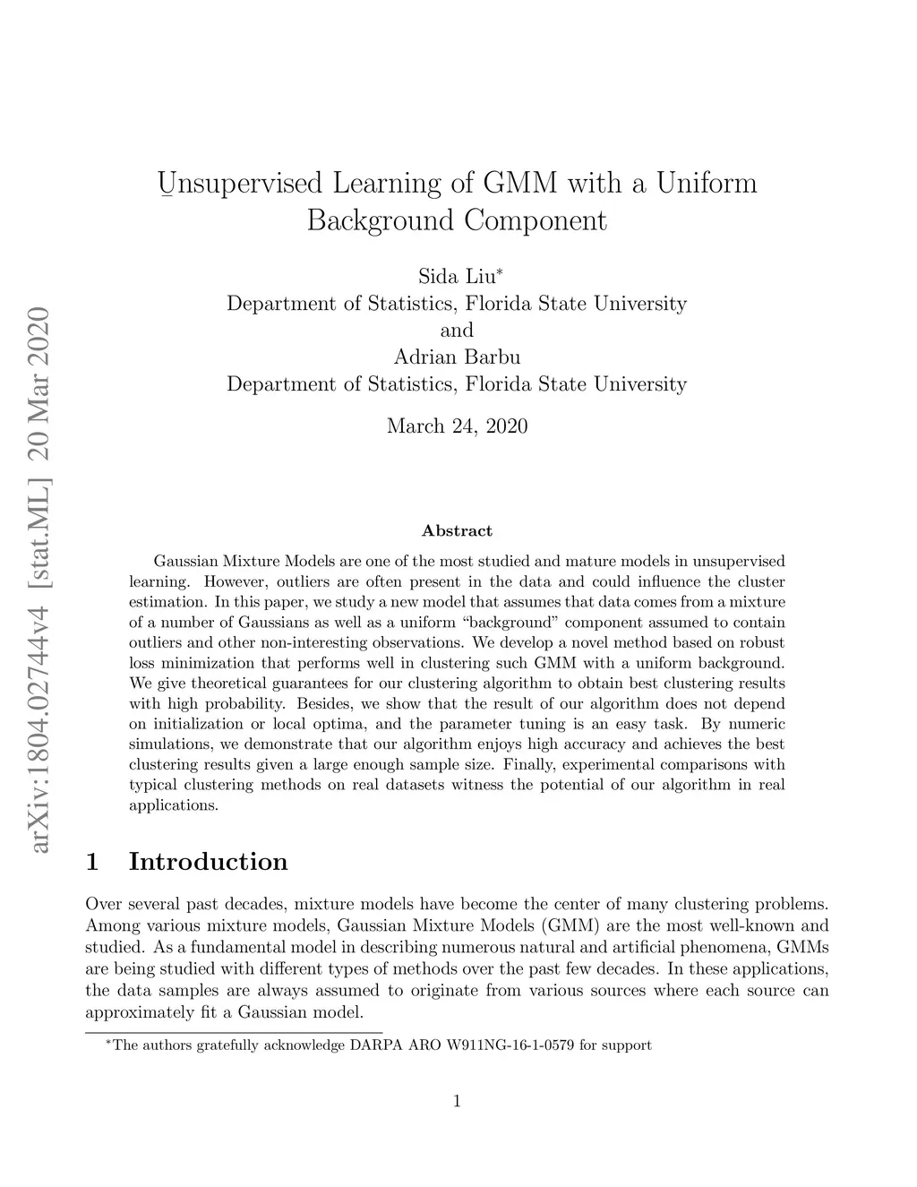 Gaussian Mixture Models are one of the most studied and mature models in unsupervised learning. However, outliers are often present in the data and could influence the cluster estimation. In this paper, we study a new model that assumes that data comes from a mixture of a number of Gaussians as well as a uniform ``background'' component assumed to contain outliers and other non-interesting observations. We develop a novel method based on robust loss minimization that performs well in clustering such GMM with a uniform background. We give theoretical guarantees for our clustering algorithm to obtain best clustering results with high probability. Besides, we show that the result of our algorithm does not depend on initialization or local optima, and the parameter tuning is an easy task. By numeric simulations, we demonstrate that our algorithm enjoys high accuracy and achieves the best clustering results given a large enough sample size. Finally, experimental comparisons with typical clustering methods on real datasets witness the potential of our algorithm in real applications.