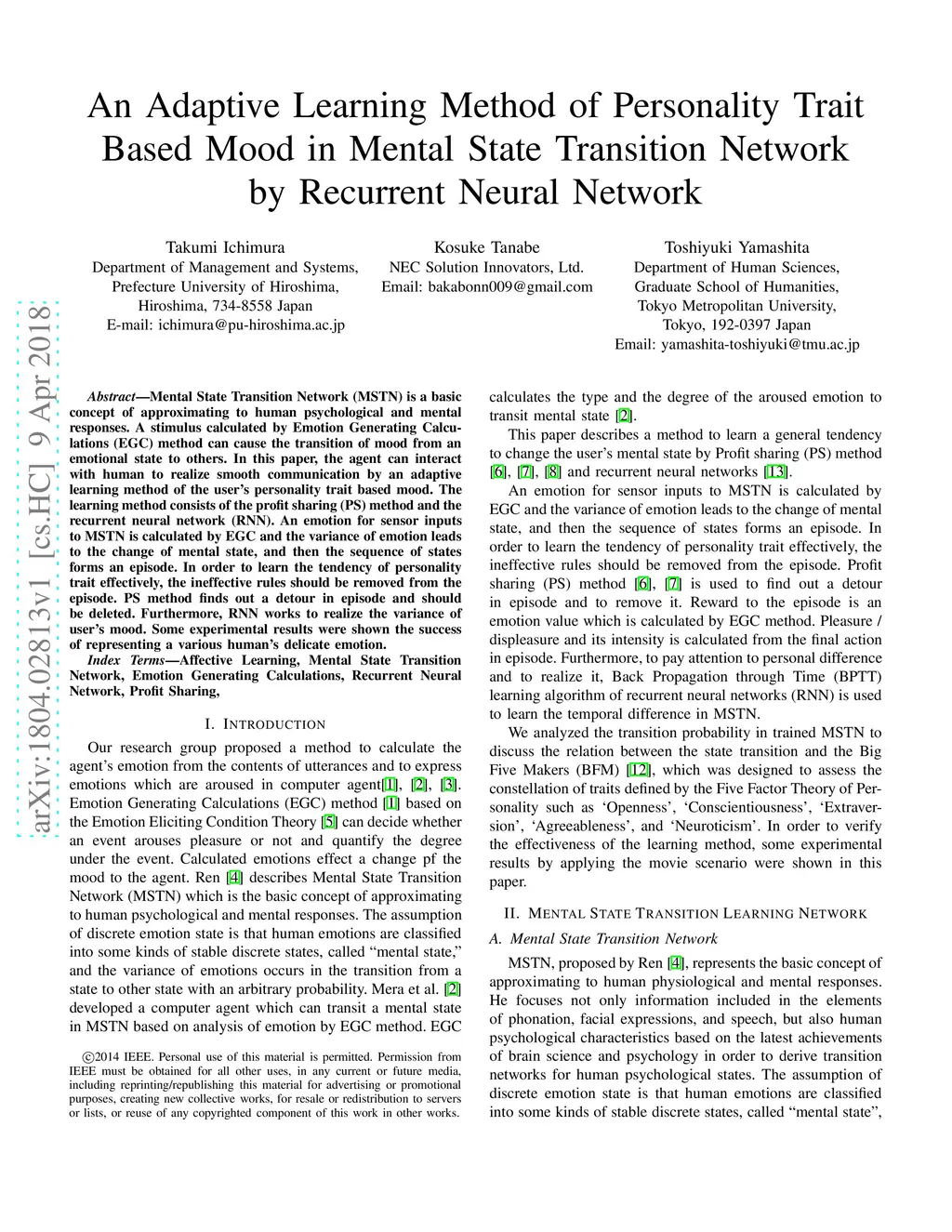 An Adaptive Learning Method of Personality Trait Based Mood in Mental