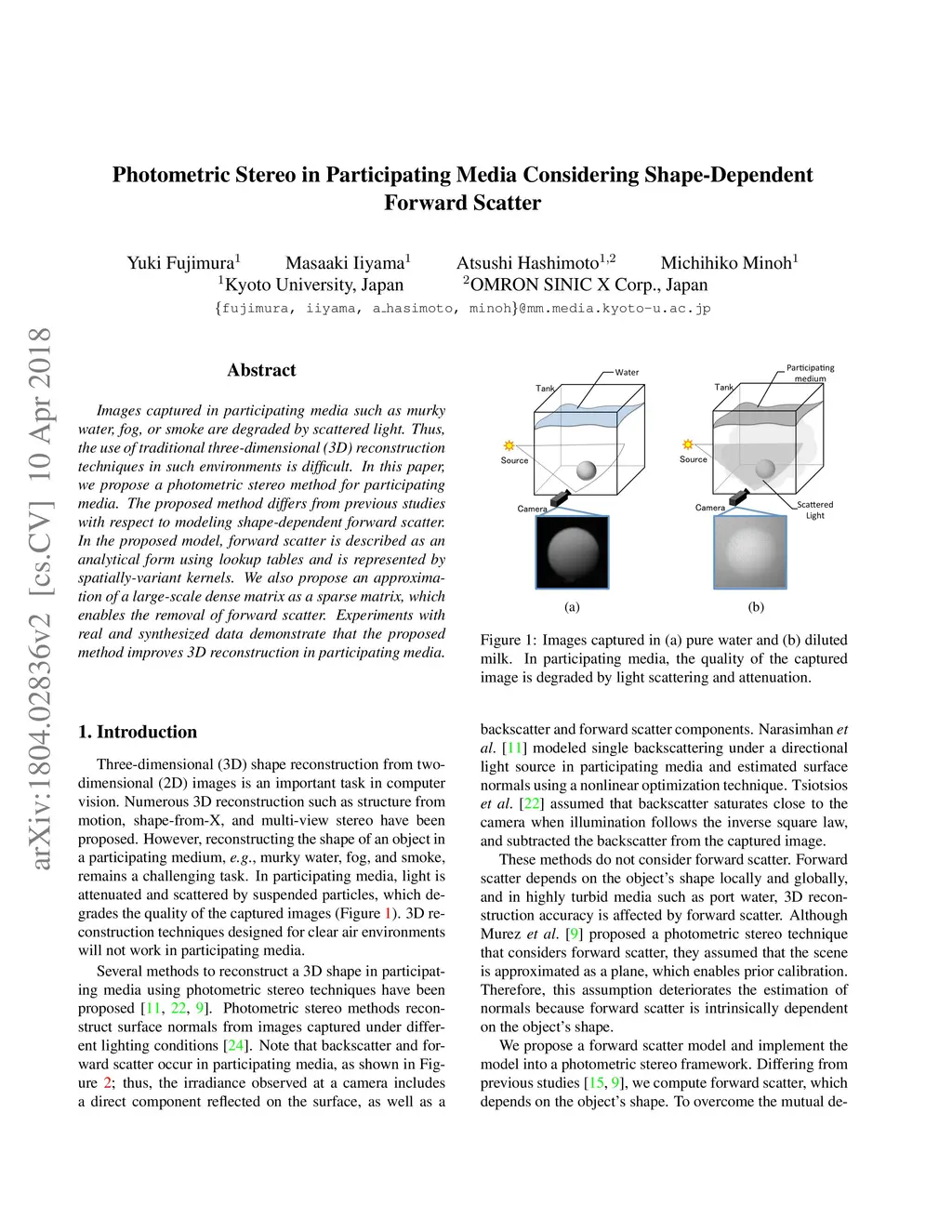 Photometric Stereo in Participating Media Considering Shape-Dependent