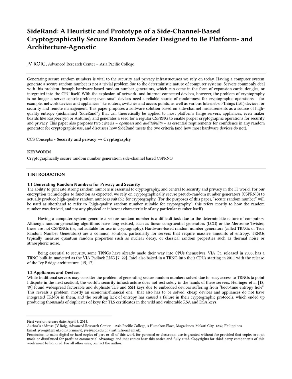 SideRand: A Heuristic and Prototype of a Side-Channel-Based