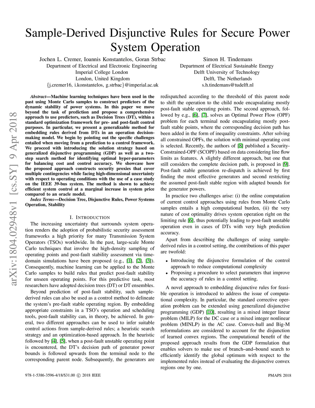 Sample-Derived Disjunctive Rules for Secure Power System Operation
