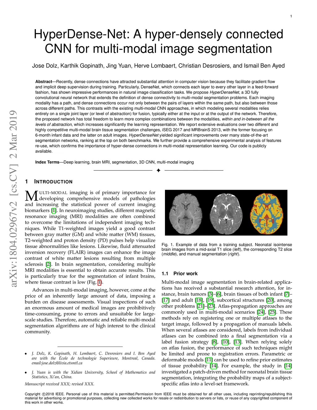 HyperDense-Net: A hyper-densely connected CNN for multi-modal image