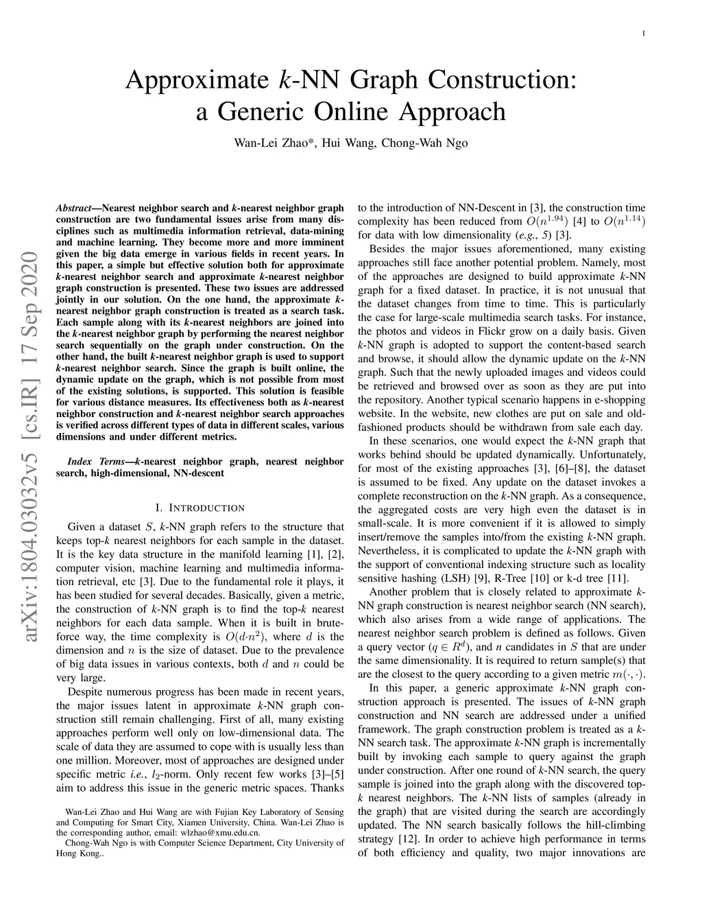 Approximate k-NN Graph Construction: a Generic Online Approach