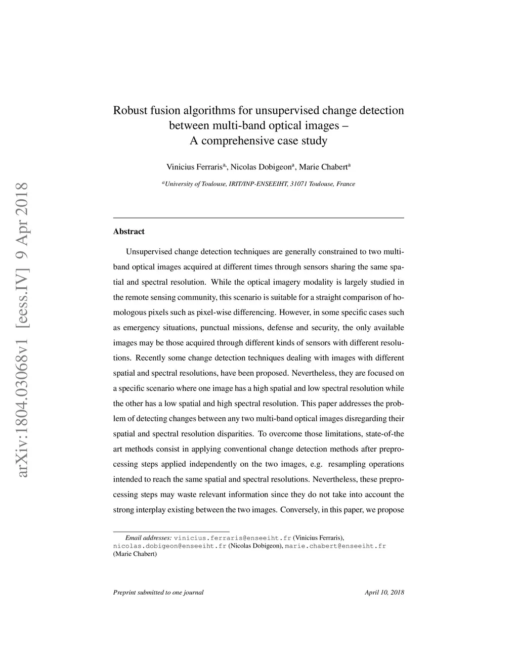 Robust fusion algorithms for unsupervised change detection between