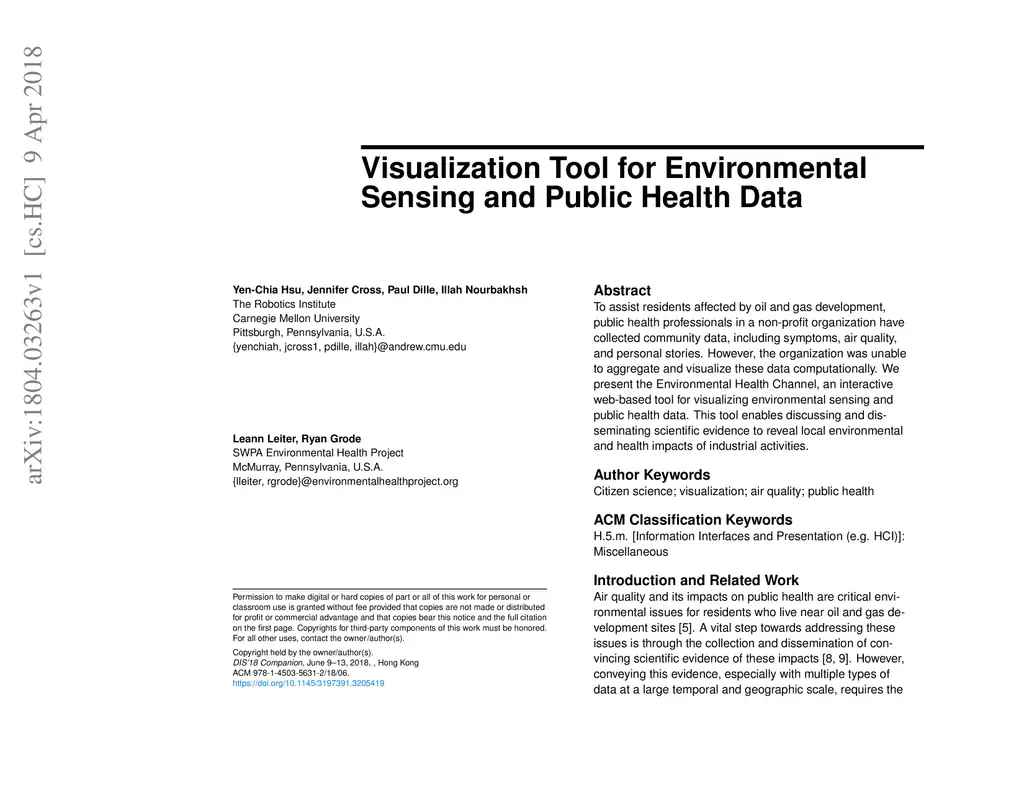 Visualization Tool for Environmental Sensing and Public Health Data