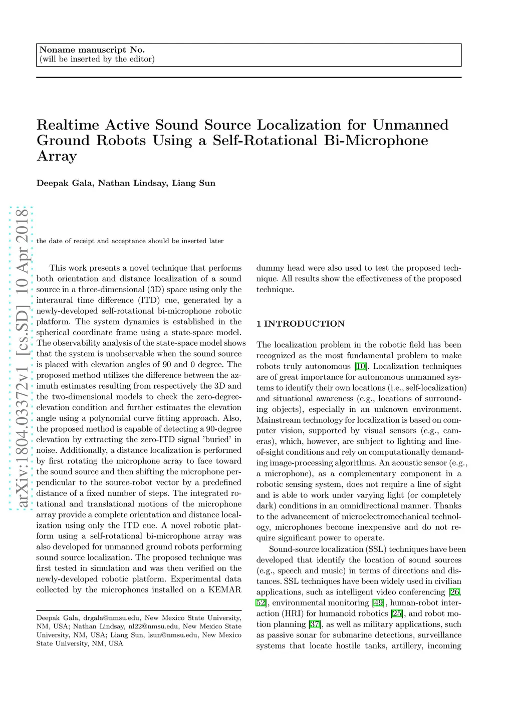 Realtime Active Sound Source Localization for Unmanned Ground Robots
