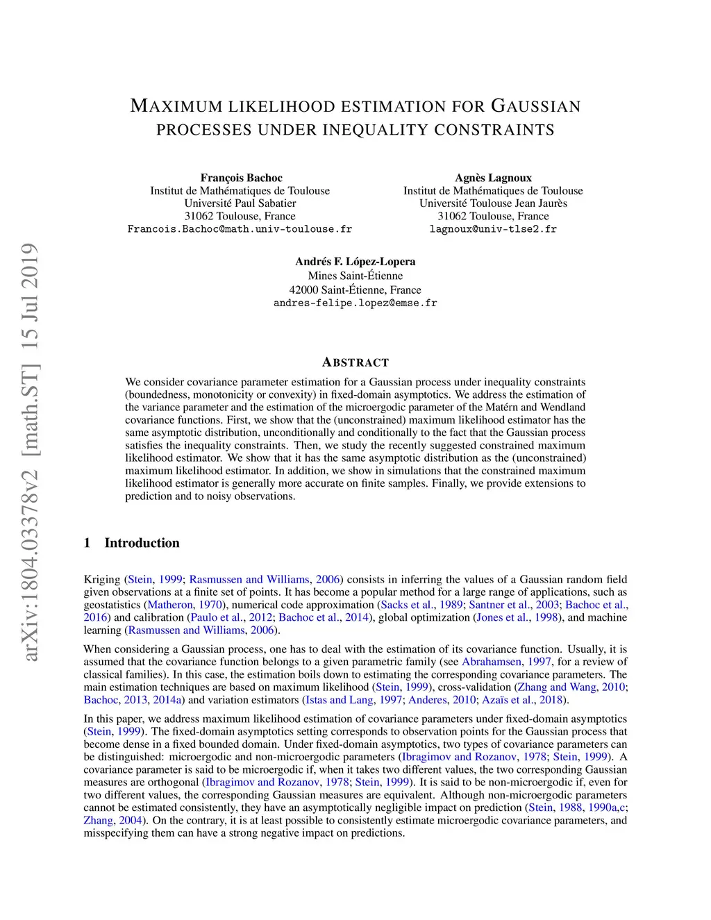Maximum likelihood estimation for Gaussian processes under inequality