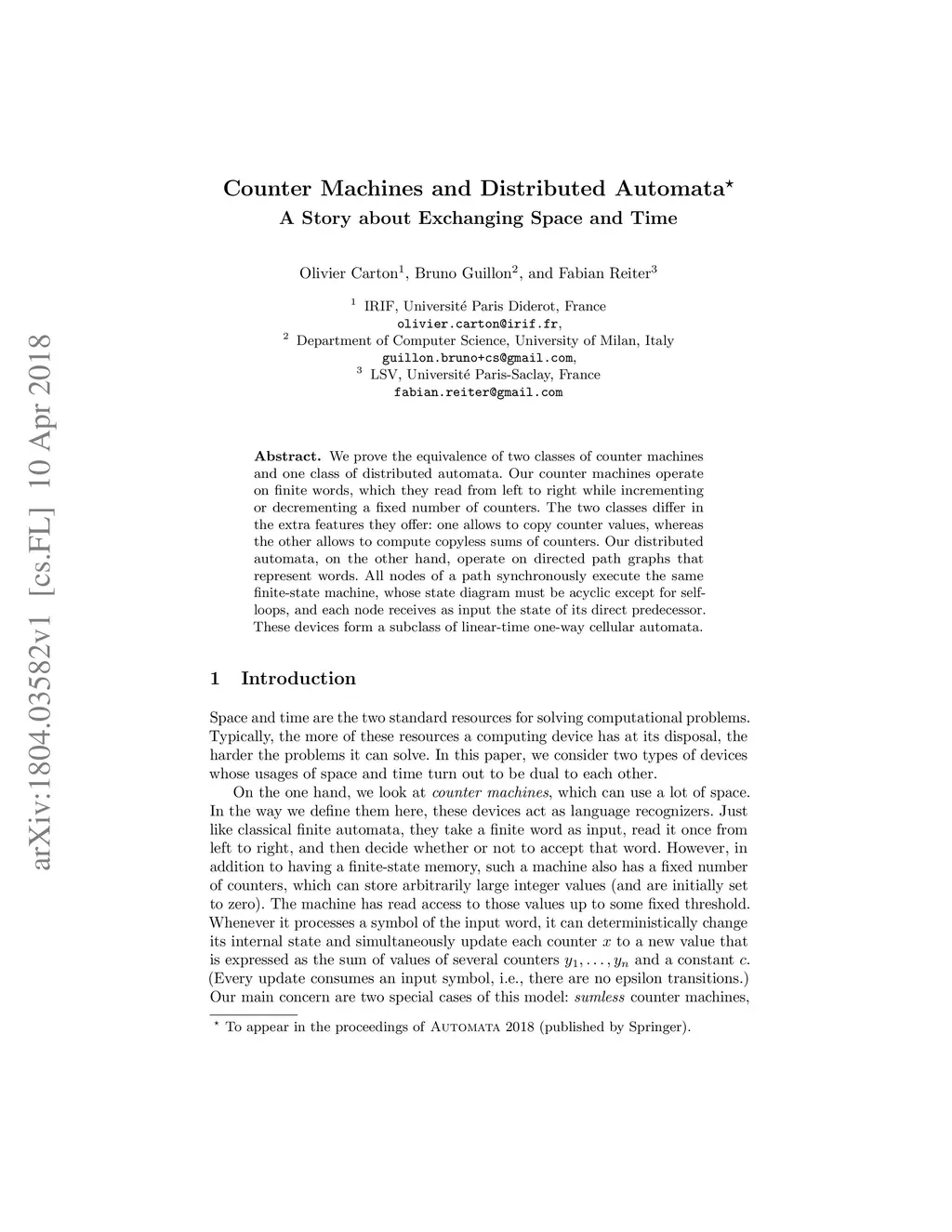 We prove the equivalence of two classes of counter machines and one class of distributed automata. Our counter machines operate on finite words, which they read from left to right while incrementing or decrementing a fixed number of counters. The two classes differ in the extra features they offer: one allows to copy counter values, whereas the other allows to compute copyless sums of counters. Our distributed automata, on the other hand, operate on directed path graphs that represent words. All nodes of a path synchronously execute the same finite-state machine, whose state diagram must be acyclic except for self-loops, and each node receives as input the state of its direct predecessor. These devices form a subclass of linear-time one-way cellular automata.