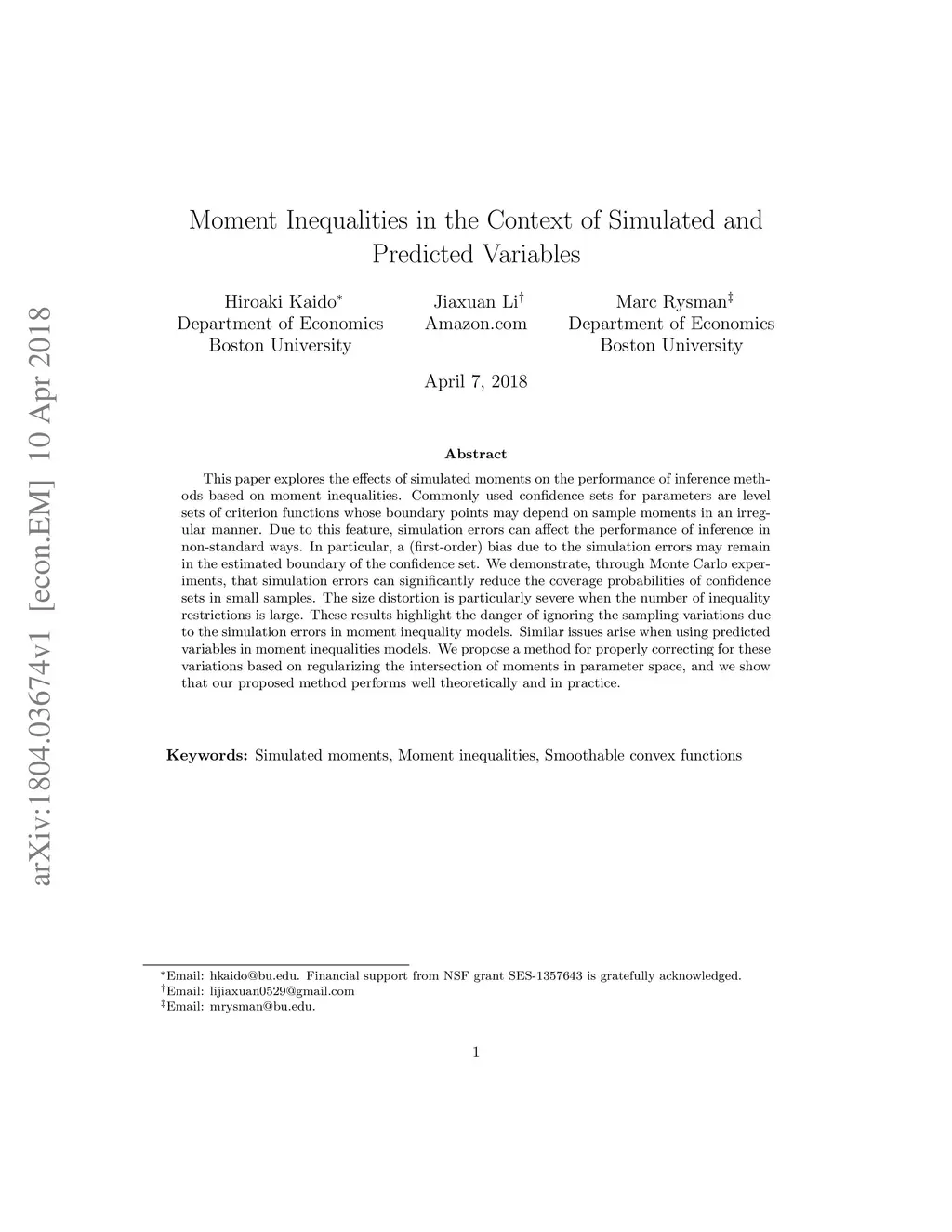 Moment Inequalities in the Context of Simulated and Predicted Variables