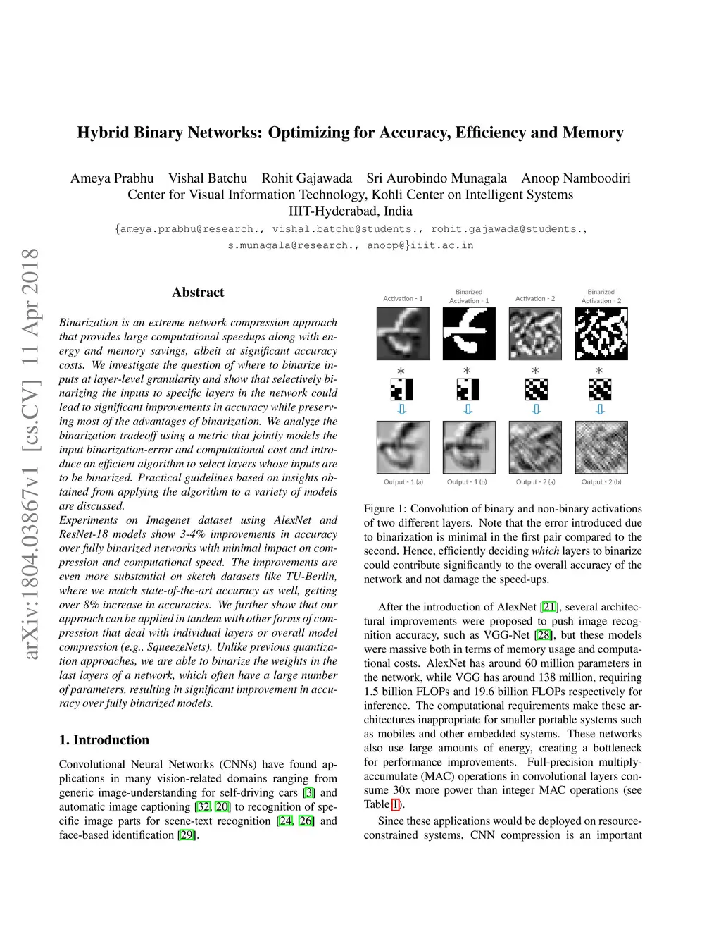 Hybrid Binary Networks: Optimizing for Accuracy, Efficiency and Memory