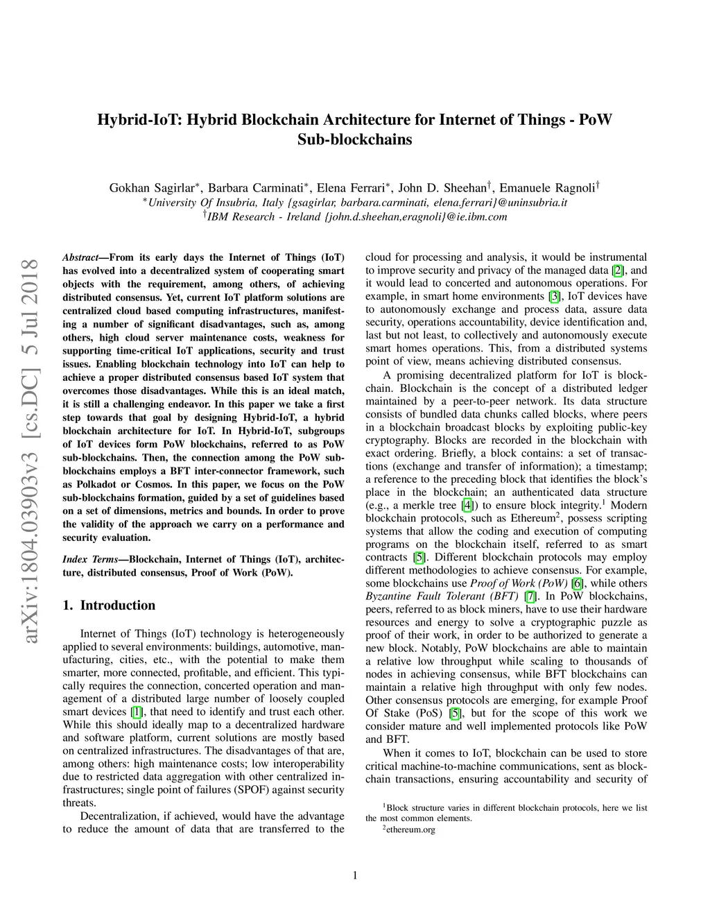 Hybrid-IoT: Hybrid Blockchain Architecture for Internet of Things - PoW