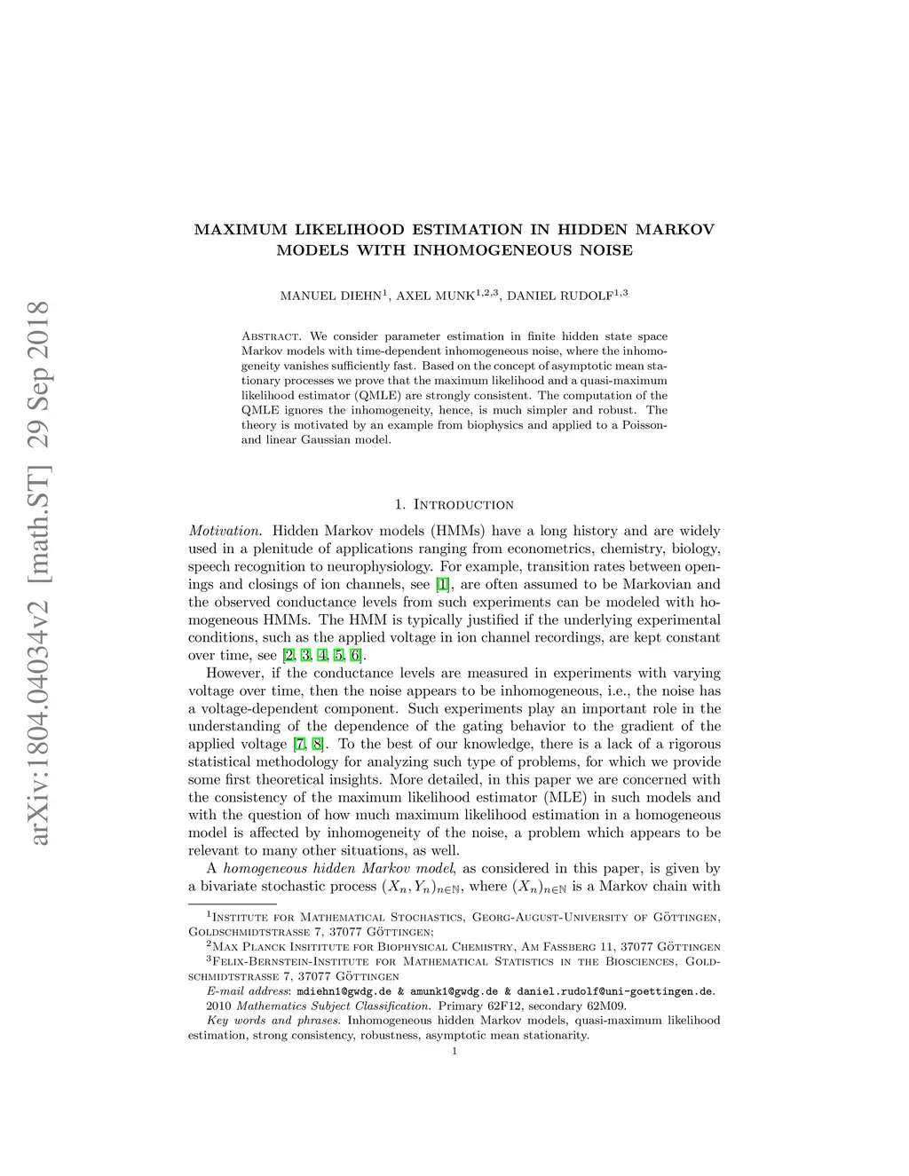 We consider parameter estimation in finite hidden state space Markov models with time-dependent inhomogeneous noise, where the inhomogeneity vanishes sufficiently fast. Based on the concept of asymptotic mean stationary processes we prove that the maximum likelihood and a quasi-maximum likelihood estimator (QMLE) are strongly consistent. The computation of the QMLE ignores the inhomogeneity, hence, is much simpler and robust. The theory is motivated by an example from biophysics and applied to a Poisson- and linear Gaussian model.