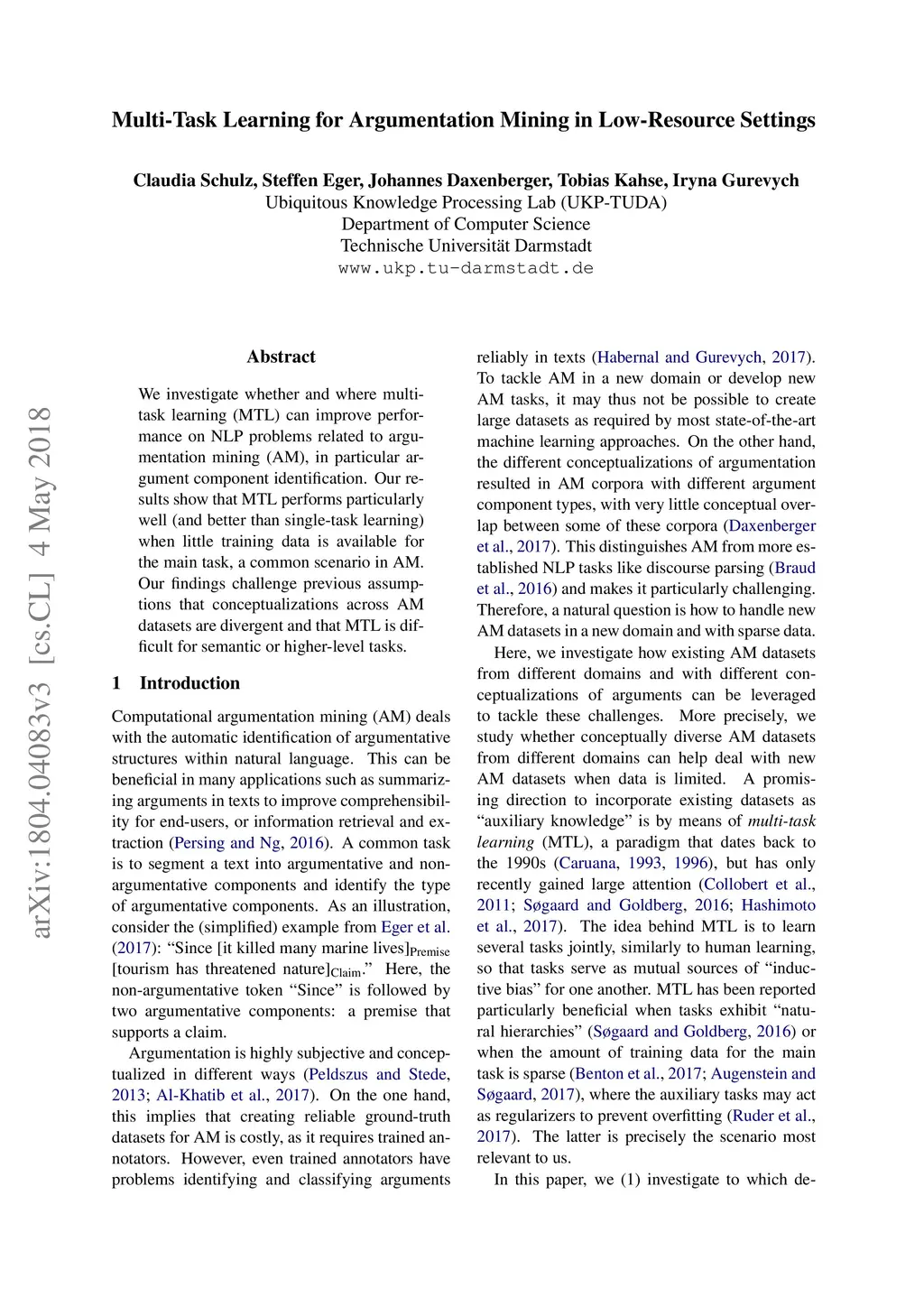 Multi-Task Learning for Argumentation Mining in Low-Resource Settings