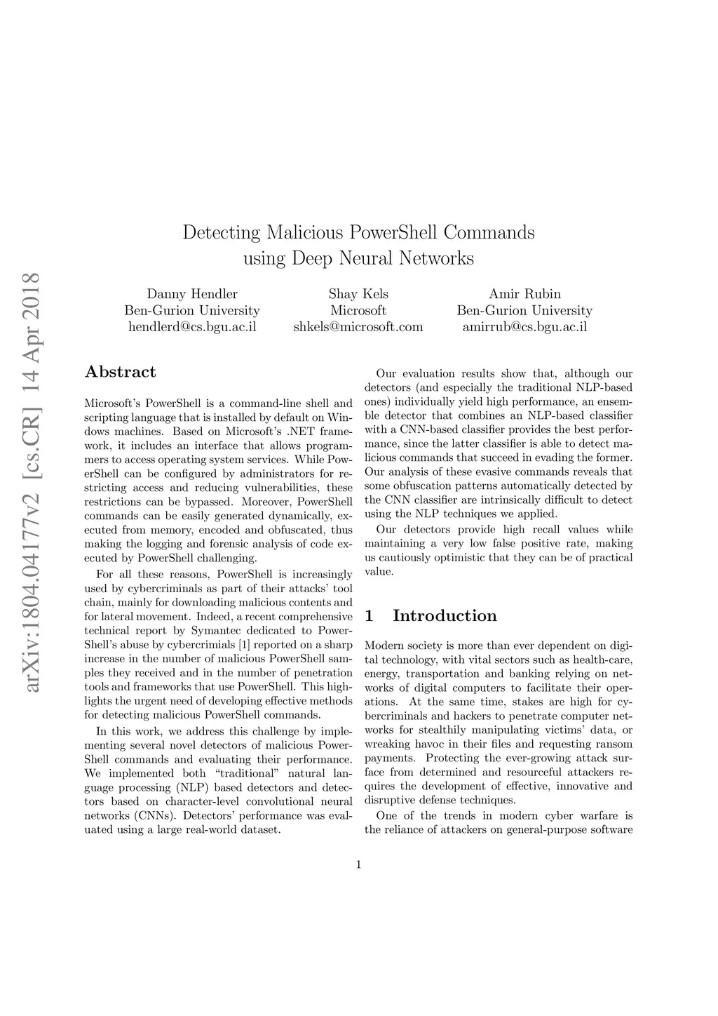 Detecting Malicious PowerShell Commands using Deep Neural Networks