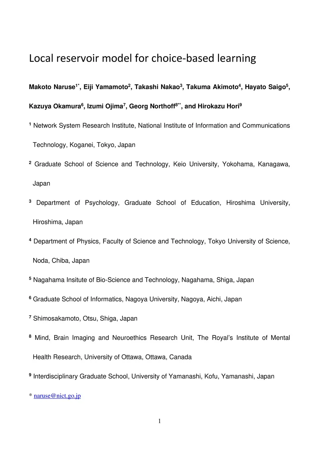Local reservoir model for choice-based learning