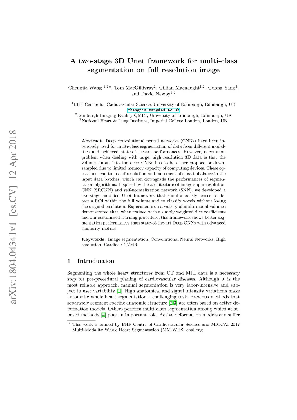 A two-stage 3D Unet framework for multi-class segmentation on full