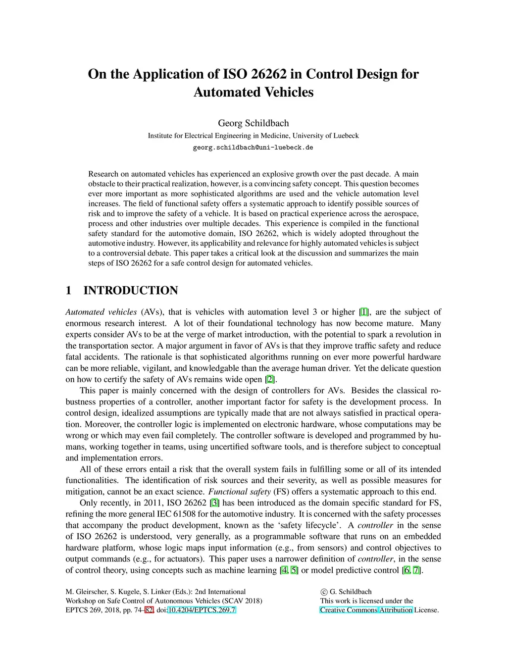 Research on automated vehicles has experienced an explosive growth over the past decade. A main obstacle to their practical realization, however, is a convincing safety concept. This question becomes ever more important as more sophisticated algorithms are used and the vehicle automation level increases. The field of functional safety offers a systematic approach to identify possible sources of risk and to improve the safety of a vehicle. It is based on practical experience across the aerospace, process and other industries over multiple decades. This experience is compiled in the functional safety standard for the automotive domain, ISO 26262, which is widely adopted throughout the automotive industry. However, its applicability and relevance for highly automated vehicles is subject to a controversial debate. This paper takes a critical look at the discussion and summarizes the main steps of ISO 26262 for a safe control design for automated vehicles.