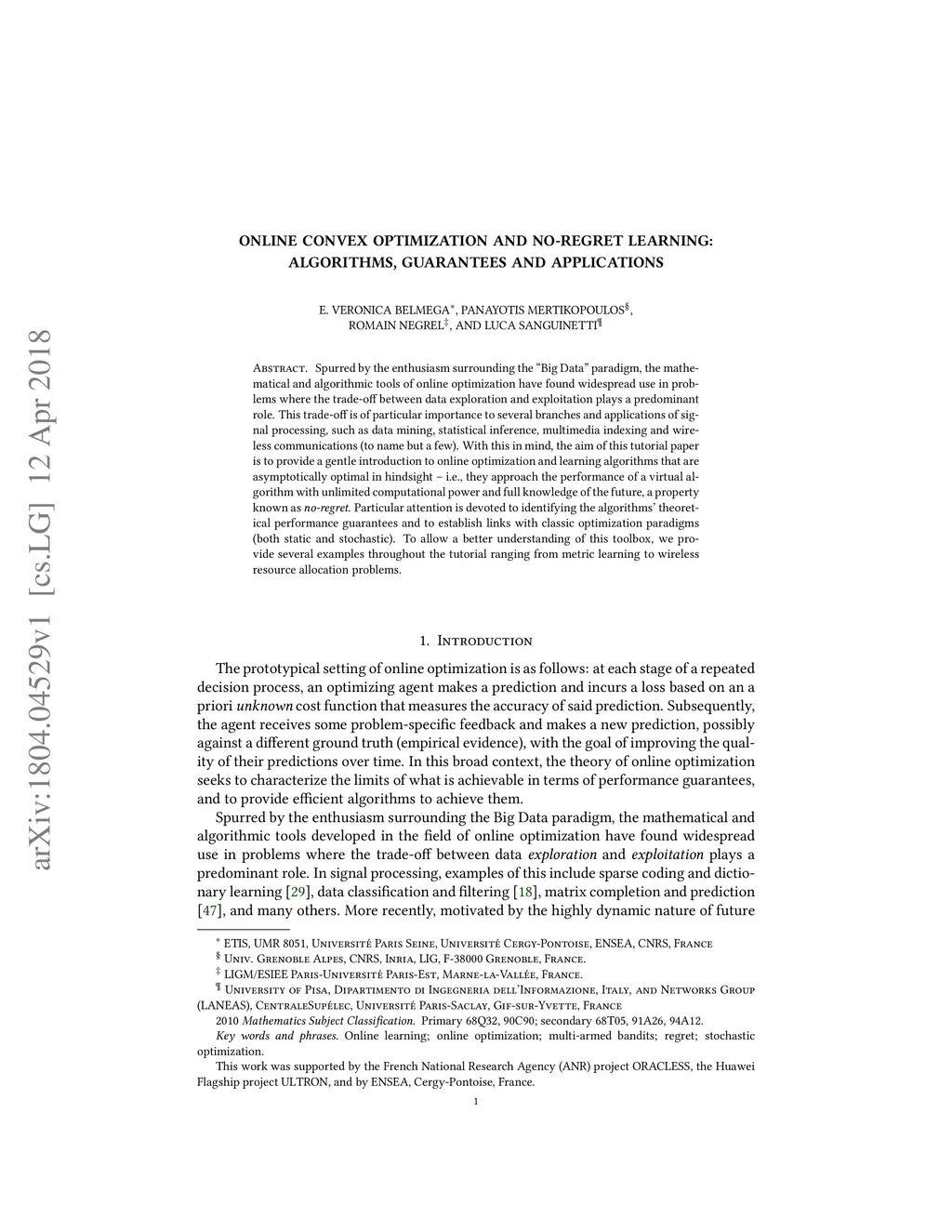 Spurred by the enthusiasm surrounding the "Big Data" paradigm, the mathematical and algorithmic tools of online optimization have found widespread use in problems where the trade-off between data exploration and exploitation plays a predominant role. This trade-off is of particular importance to several branches and applications of signal processing, such as data mining, statistical inference, multimedia indexing and wireless communications (to name but a few). With this in mind, the aim of this tutorial paper is to provide a gentle introduction to online optimization and learning algorithms that are asymptotically optimal in hindsight - i.e., they approach the performance of a virtual algorithm with unlimited computational power and full knowledge of the future, a property known as no-regret. Particular attention is devoted to identifying the algorithms' theoretical performance guarantees and to establish links with classic optimization paradigms (both static and stochastic). To allow a better understanding of this toolbox, we provide several examples throughout the tutorial ranging from metric learning to wireless resource allocation problems.