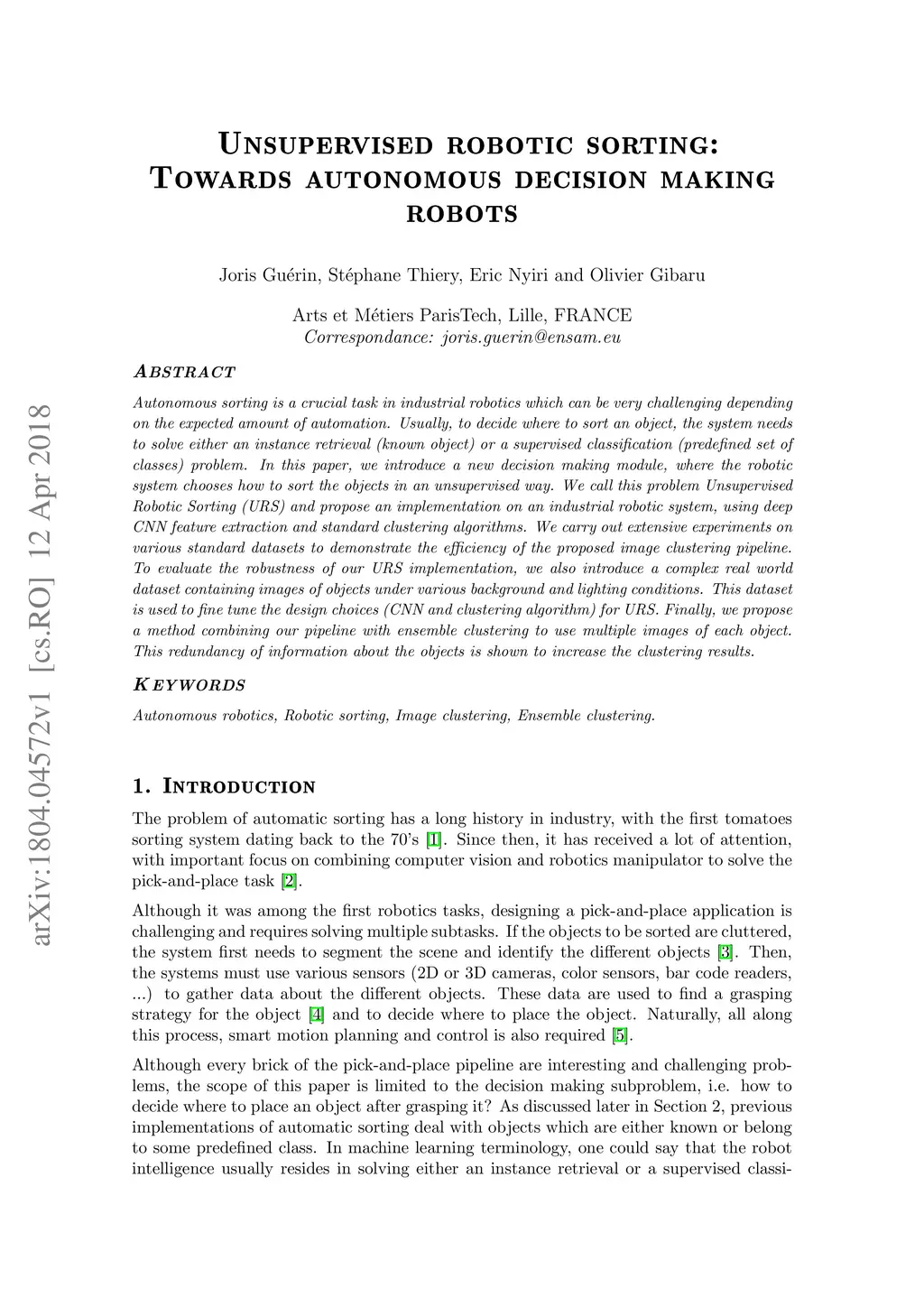 Unsupervised robotic sorting: Towards autonomous decision making robots