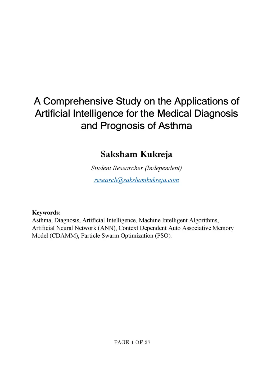 Medical Diagnosis and Prognosis of Asthma