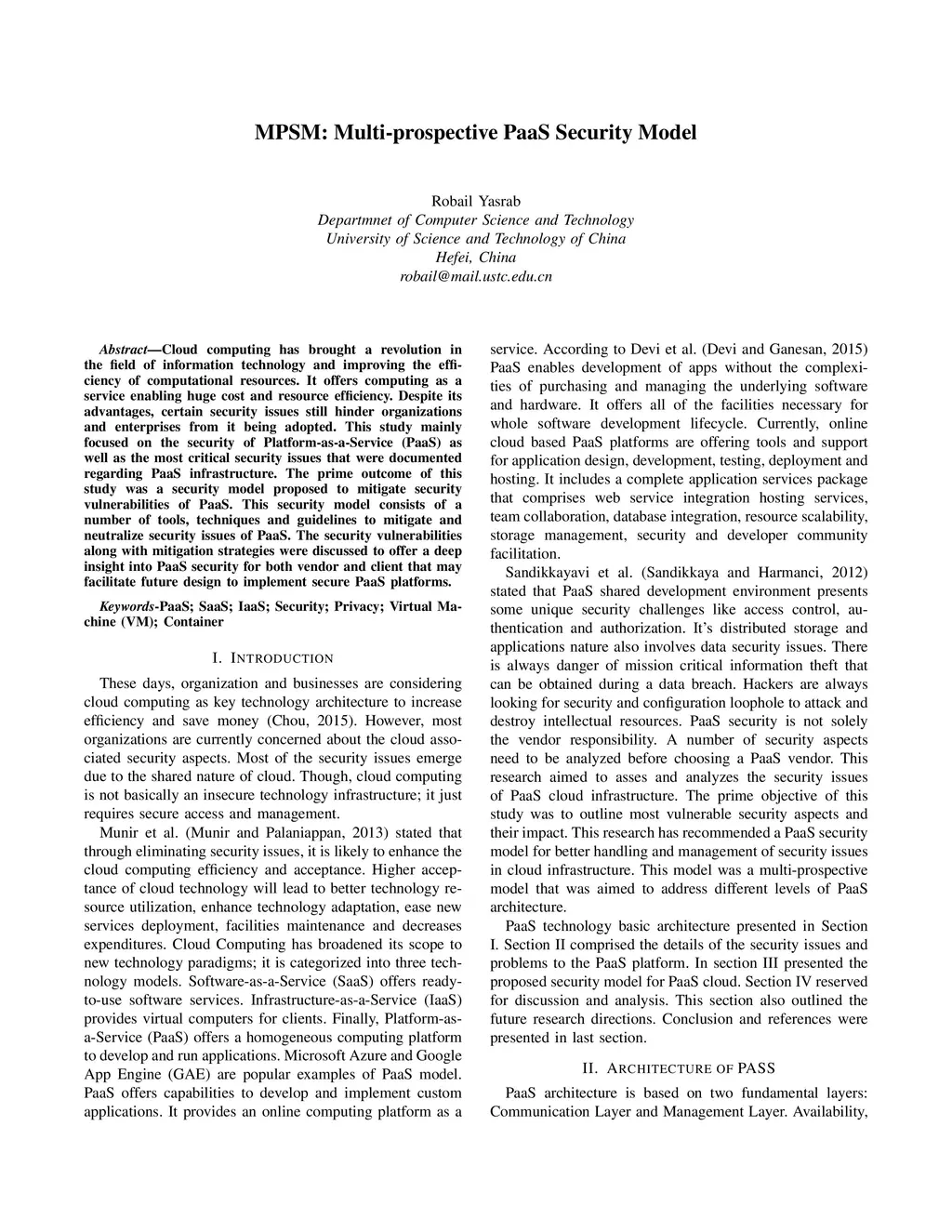 MPSM: Multi-prospective PaaS Security Model