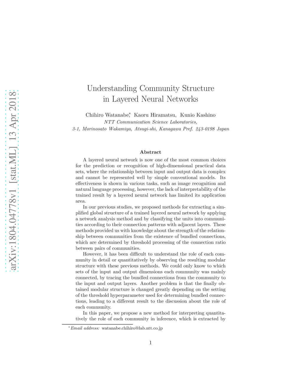 A layered neural network is now one of the most common choices for the prediction of high-dimensional practical data sets, where the relationship between input and output data is complex and cannot be represented well by simple conventional models. Its effectiveness is shown in various tasks, however, the lack of interpretability of the trained result by a layered neural network has limited its application area. In our previous studies, we proposed methods for extracting a simplified global structure of a trained layered neural network by classifying the units into communities according to their connection patterns with adjacent layers. These methods provided us with knowledge about the strength of the relationship between communities from the existence of bundled connections, which are determined by threshold processing of the connection ratio between pairs of communities. However, it has been difficult to understand the role of each community quantitatively by observing the modular structure. We could only know to which sets of the input and output dimensions each community was mainly connected, by tracing the bundled connections from the community to the input and output layers. Another problem is that the finally obtained modular structure is changed greatly depending on the setting of the threshold hyperparameter used for determining bundled connections. In this paper, we propose a new method for interpreting quantitatively the role of each community in inference, by defining the effect of each input dimension on a community, and the effect of a community on each output dimension. We show experimentally that our proposed method can reveal the role of each part of a layered neural network by applying the neural networks to three types of data sets, extracting communities from the trained network, and applying the proposed method to the community structure.