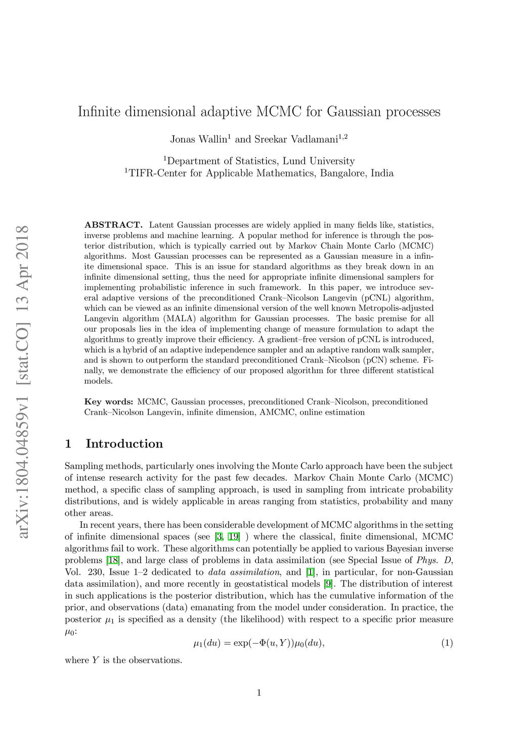 Infinite dimensional adaptive MCMC for Gaussian processes