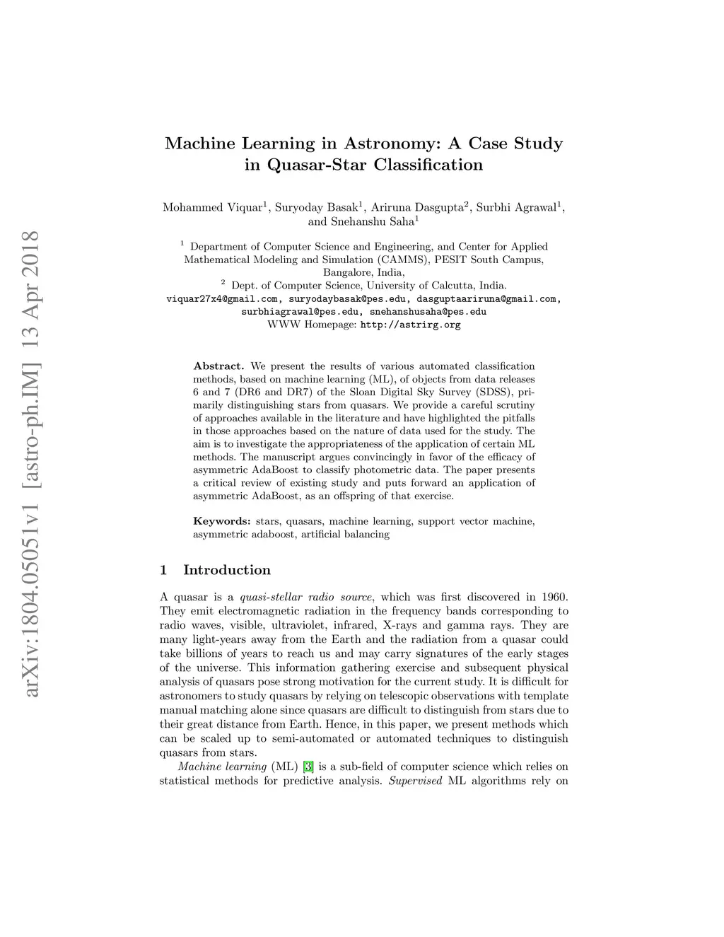 We present the results of various automated classification methods, based on machine learning (ML), of objects from data releases 6 and 7 (DR6 and DR7) of the Sloan Digital Sky Survey (SDSS), primarily distinguishing stars from quasars. We provide a careful scrutiny of approaches available in the literature and have highlighted the pitfalls in those approaches based on the nature of data used for the study. The aim is to investigate the appropriateness of the application of certain ML methods. The manuscript argues convincingly in favor of the efficacy of asymmetric AdaBoost to classify photometric data. The paper presents a critical review of existing study and puts forward an application of asymmetric AdaBoost, as an offspring of that exercise.