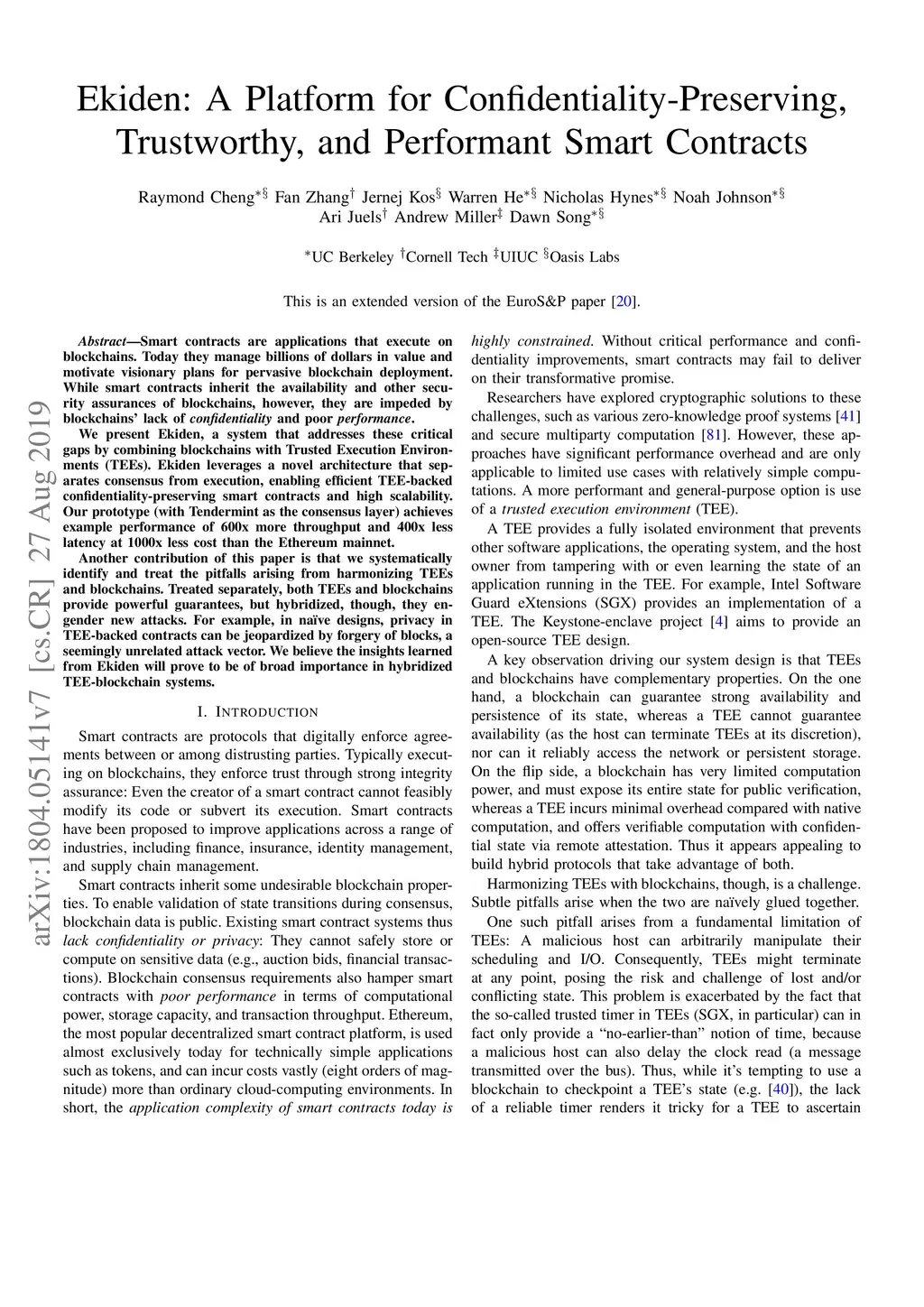 Ekiden: A Platform for Confidentiality-Preserving, Trustworthy, and