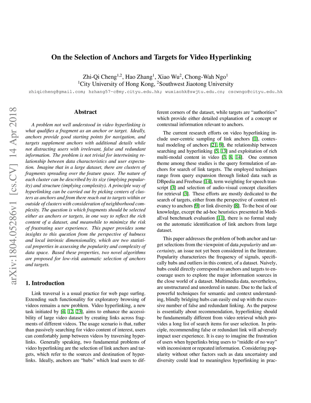 On the Selection of Anchors and Targets for Video Hyperlinking