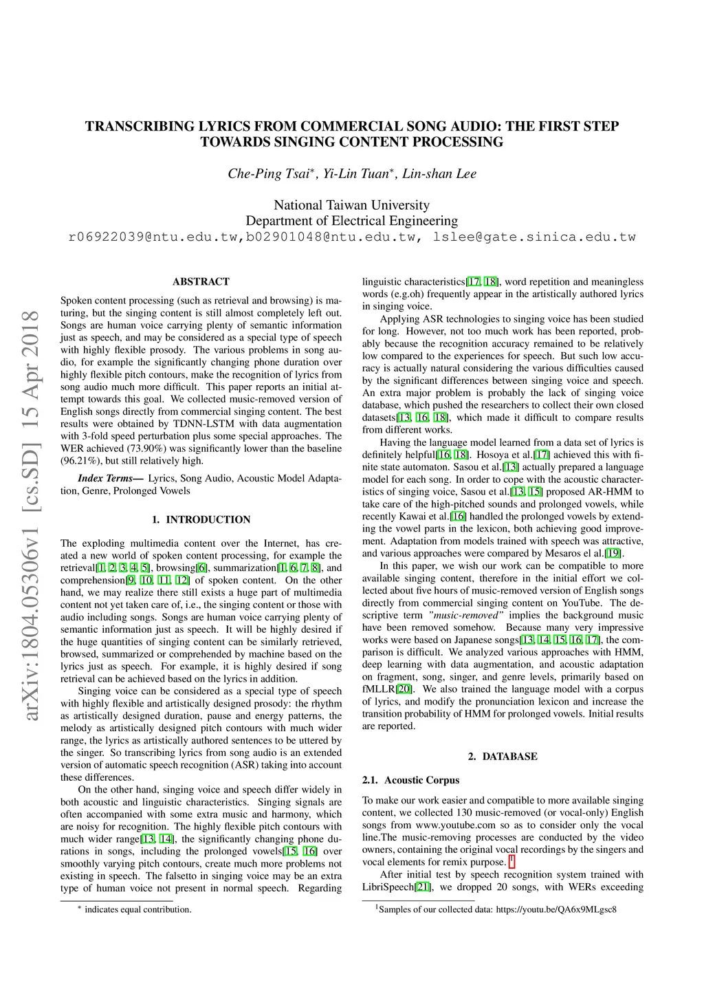 Transcribing Lyrics From Commercial Song Audio: The First Step Towards