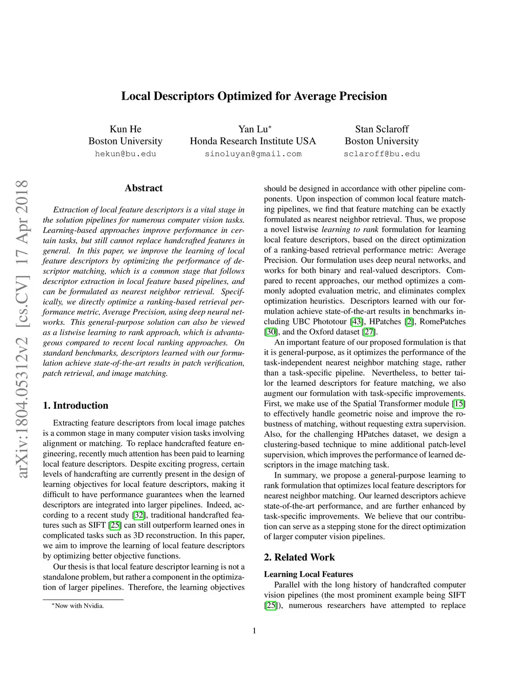 Local Descriptors Optimized for Average Precision