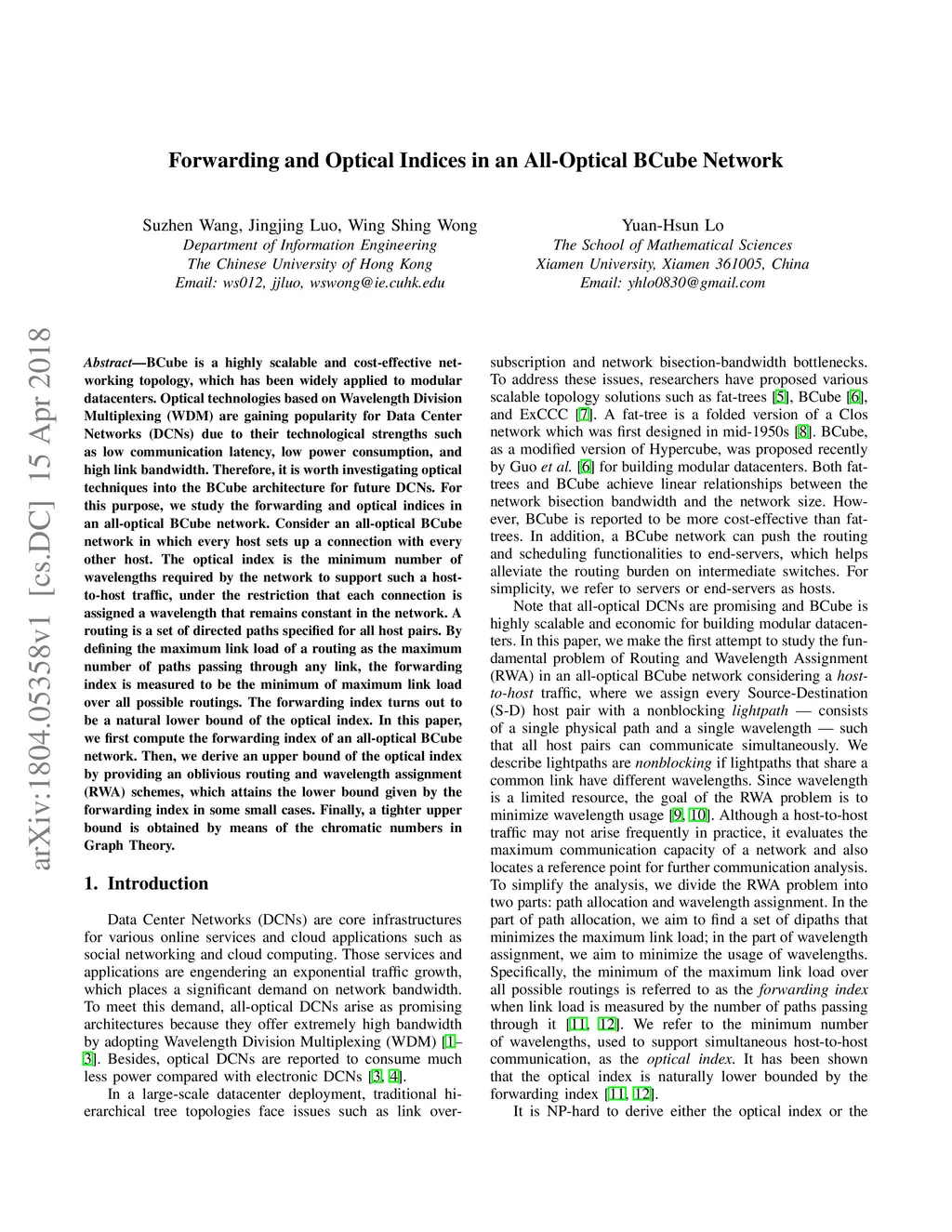 Forwarding and Optical Indices in an All-Optical BCube Network