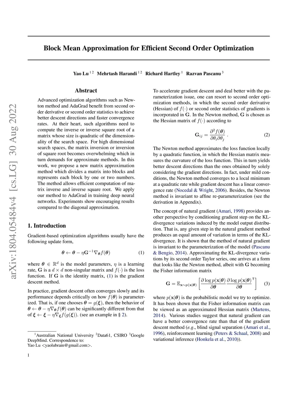 Block Mean Approximation for Efficient Second Order Optimization