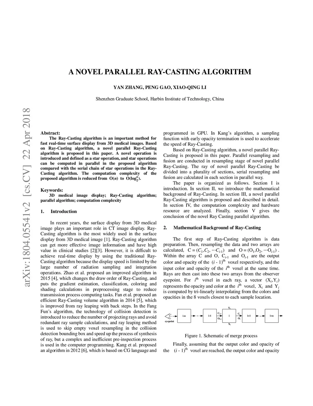 The Ray-Casting algorithm is an important method for fast real-time surface display from 3D medical images. Based on the Ray-Casting algorithm, a novel parallel Ray-Casting algorithm is proposed in this paper. A novel operation is introduced and defined as a star operation, and star operations can be computed in parallel in the proposed algorithm compared with the serial chain of star operations in the Ray-Casting algorithm. The computation complexity of the proposed algorithm is reduced from to .