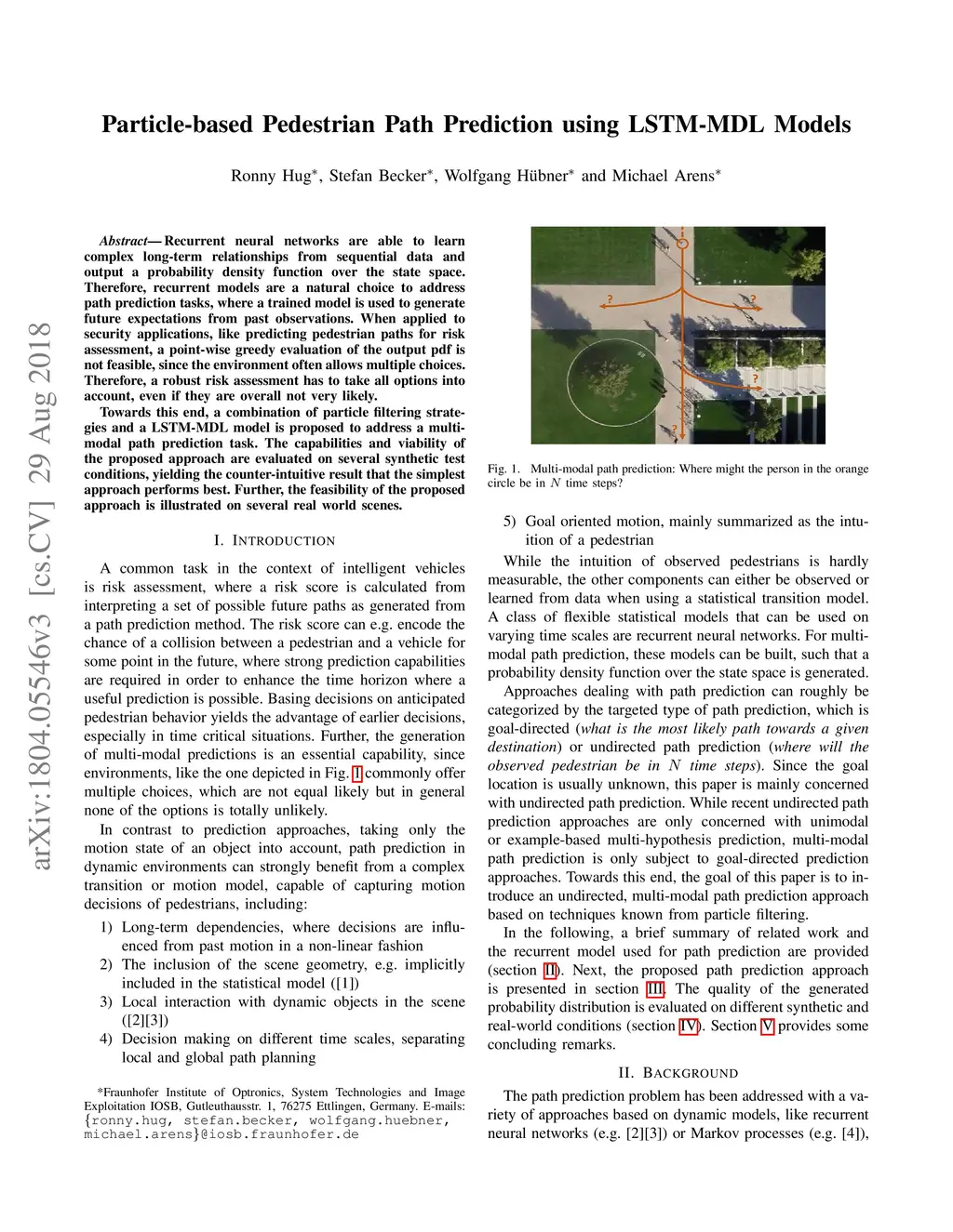 Particle-based pedestrian path prediction using LSTM-MDL models