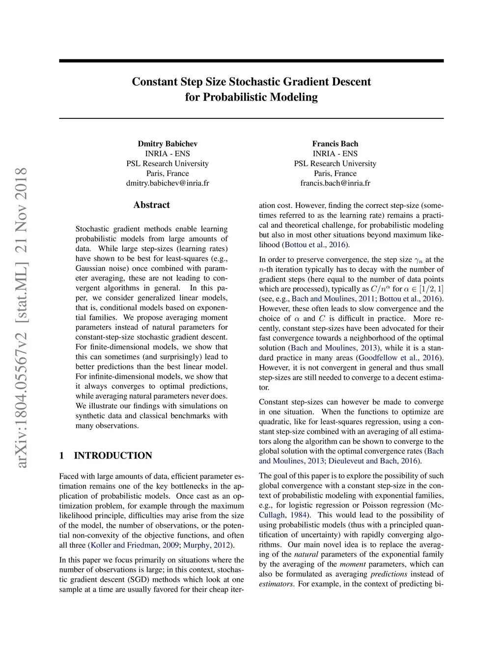 Constant Step Size Stochastic Gradient Descent for Probabilistic