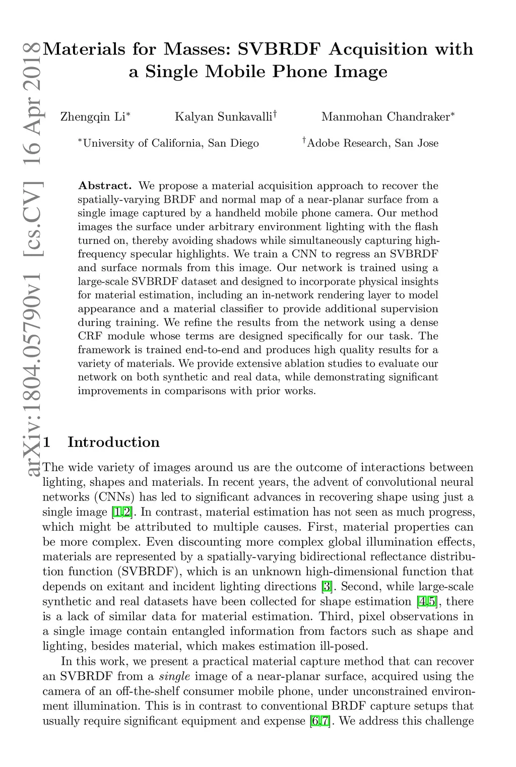 Materials for Masses: SVBRDF Acquisition with a Single Mobile Phone